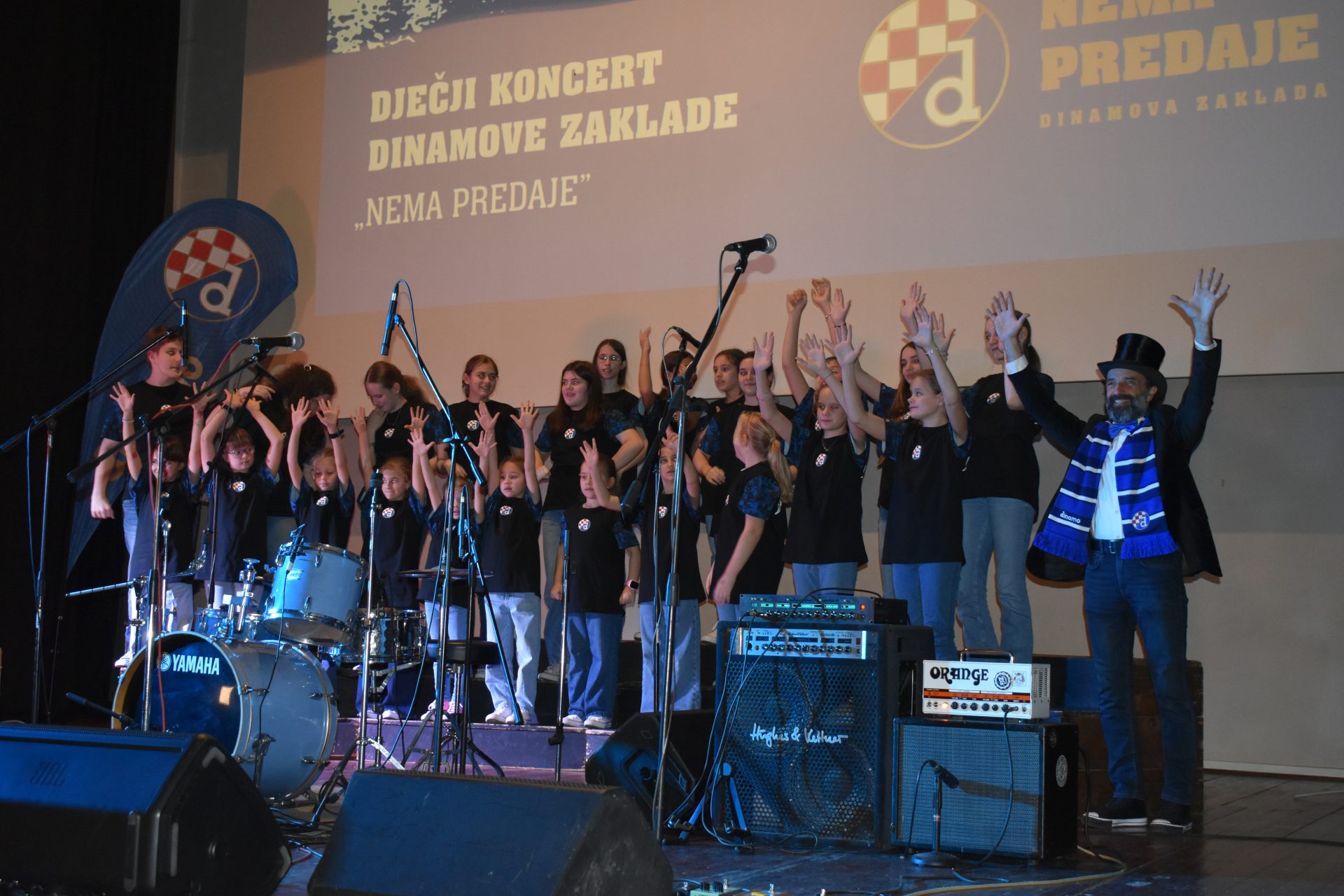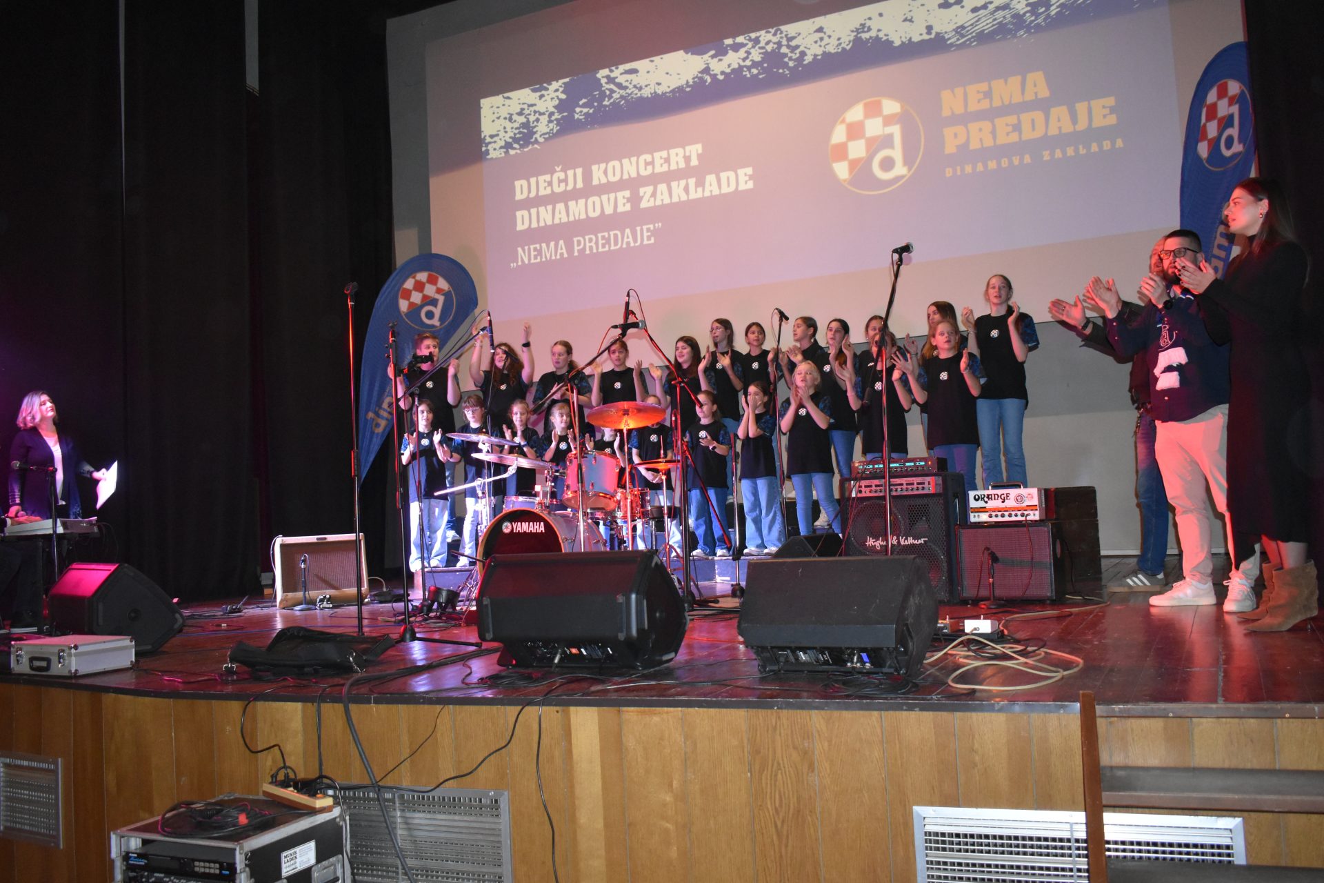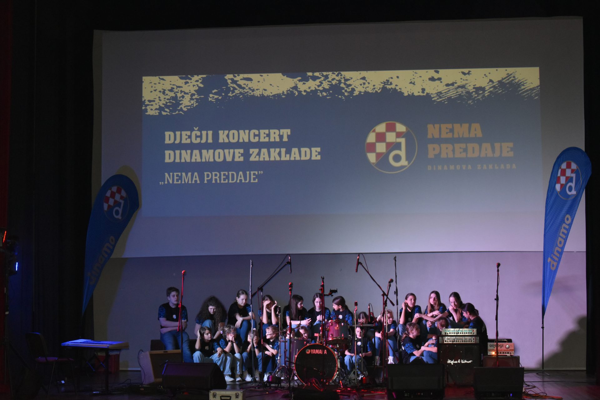 Three days after the second edition of the Children's Concert of Dinamo's foundation Nema predaje held in the sold-out small concert hall Lisinski , in the crowded cinema hall Korzo in Gospić, on Sunday, December 7th, the third edition of the Children's Concert of Dinamo's foundation was held, the first in the capital of Lika-Senj County. The Zagreb Angels are the standard bearers of the music program, the Zagreb rock band Corto once again brought a rock style to the whole event, and as solo vocalists, young musicians Korina Olivia Rogić and Tomislav Kukić made their 'debut' at Dinamo's foundation Children's concerts. The whole concert passed in a great musical and fan atmosphere, and the atmosphere was further 'ignited' by Dinamo's first team players Noa Mikić and Cardoso Varela, legend and honorary president of the Club Velimir Zajec, and the cheerful Plavko and Blue Santa Claus.