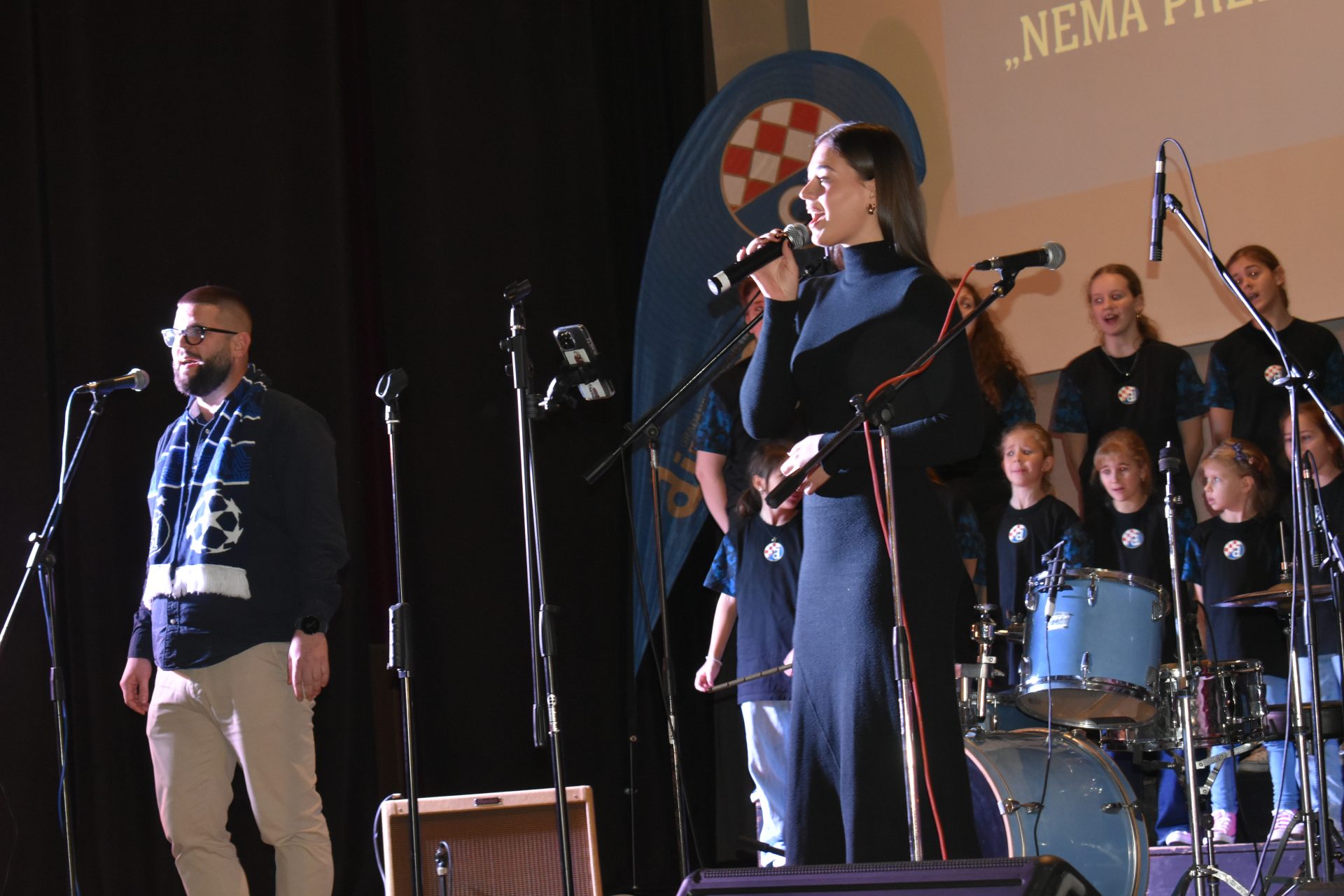 This event once again confirmed how much Gospić and Lika are proud. Namely, more than 250 visitors enjoyed the 'standard' Dinamo-Zagreb repertoire with small changes for over an hour and a half. Specifically, the song 'Zakaj volim Zagreb' by Zvonko Špišić, performed by the Zagreb Angels, received a special verse 'Zakaj volim Gospić', as well as the song 'Zagreb je najljepši grad' by Drago Diklić, this time performed by Corto, which received the verse 'Gospić je najljepši grad'. The premiere at Dinamo Foundation concerts also featured the song 'Jedina moja ljubav' by Tomislav Kukić, a musician from Zagreb who, along with the brilliant Korina Olivija Rogić, sang the duet 'Na modrom nebu iznad Zagreba' by Srebrna Krila and the song 'Dinamo' by Kemal Monteno.