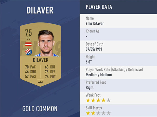 Emir Dilaver, overall rating 75