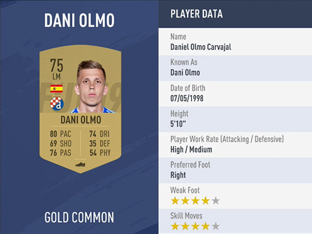 The Spanish midfielder has been with Dinamo since 2015 and ranks as the best of Dinamo players in FIFA 19. He’s outstanding with his pace (80), passing (76) and dribbling abilities (74) which enable him to create chances for teammates.