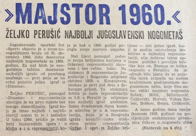 He was born on March 23, 1936, in Duga Resa and joined Dinamo in autumn of 1958. At the start of his football career he played mostly as a winger and attacking midfielder, but later his primary position was as a central midfielder. Perusic recorded 177 competitive games for Dinamo and won Yugoslav Cup in 1960 & 1963.