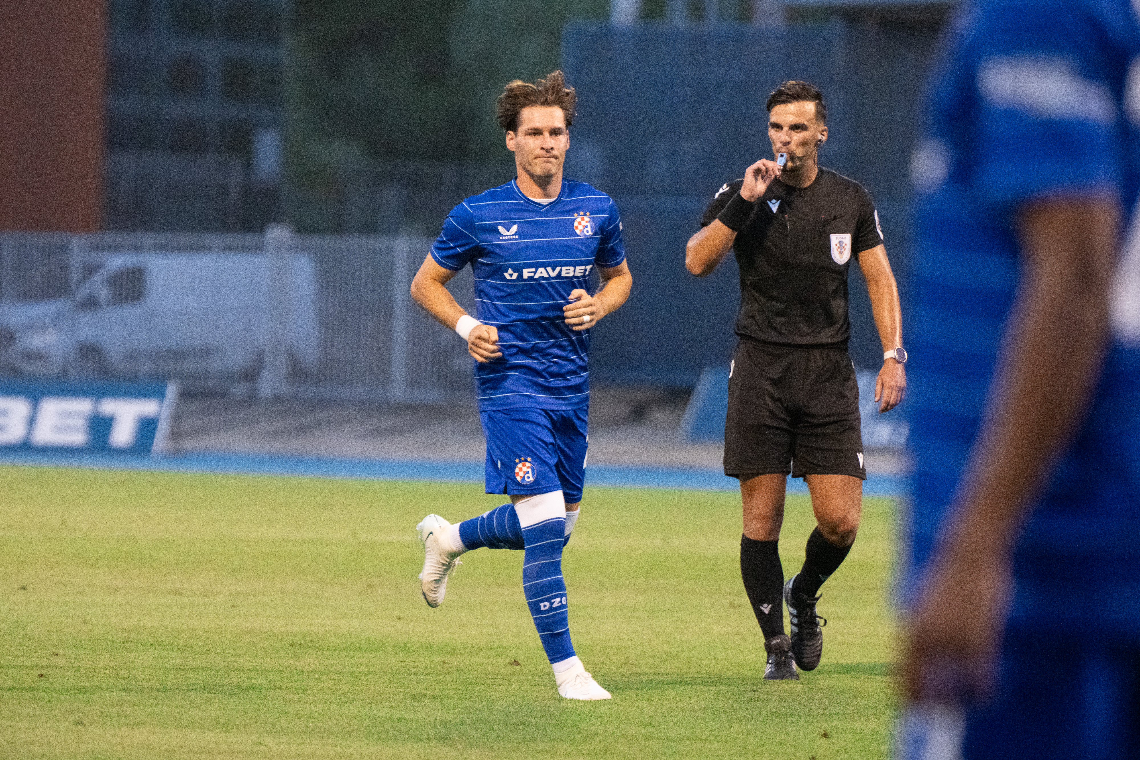 Lukavo je potom Mišić pokušao izravno iz kornera, oštro je efeom gađao bliži donji kut, a vratar Kemkin jedva izbio loptu. Sjajnu su akciju u zadnjim sekundama prvog dijela priredili maksimirski nogometaši, bili su to atraktivni vezovi iz prve, “pleli” su Ljubičić, Vidović, potom i Matteo Perez Vinlöf koji je zavrnuo pred gol, a Kevin Theophile u punom naletu lansirao loptu uza samu vratnicu.