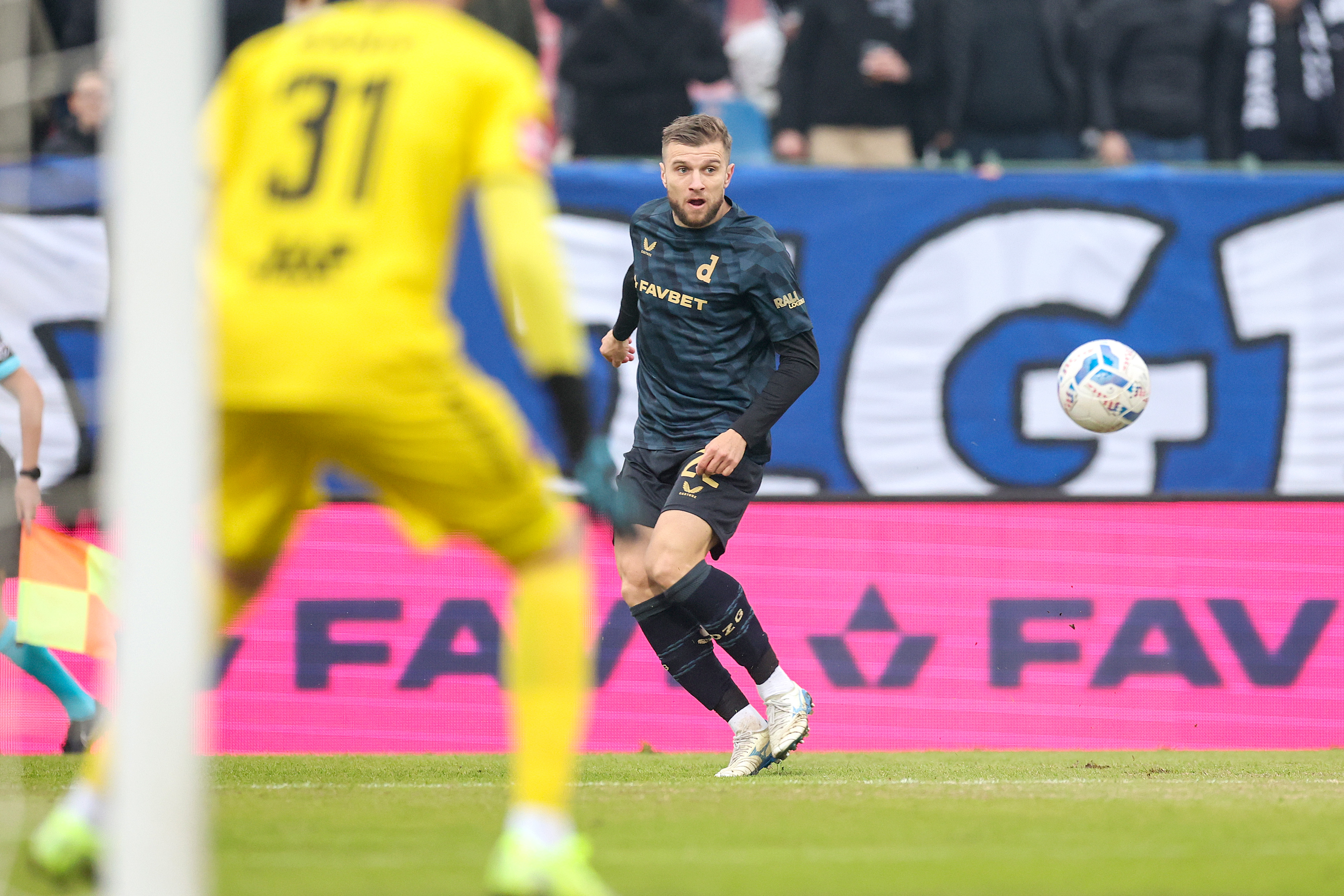 U samome smiraju prvoga dijela silni Dinamovi naleti doveli su do izjednačenja. Pierre-Gabriel je ubacio s lijeva, u nastavku akcije Pjaca snažno gađao, a Banić uspio bekendirati loptu. Uslijedila je kratka kombinacija nakon kornera, Sučić je zavrnuo pred gol, a Theophile gađao glavom s desna pri čemu se lopta od grede odbila pred samu gol-crtu. U nastavku akcije Špikić je dohvatio loptu na desnoj strani uz rub igrališta, a nakon kratkog proigravanja s Ademijem koji mu je loptu vratio petom, silovito gađao prema vratima. Putem je lopta okrznula Mikanovića i zakotrljala se u mreži.