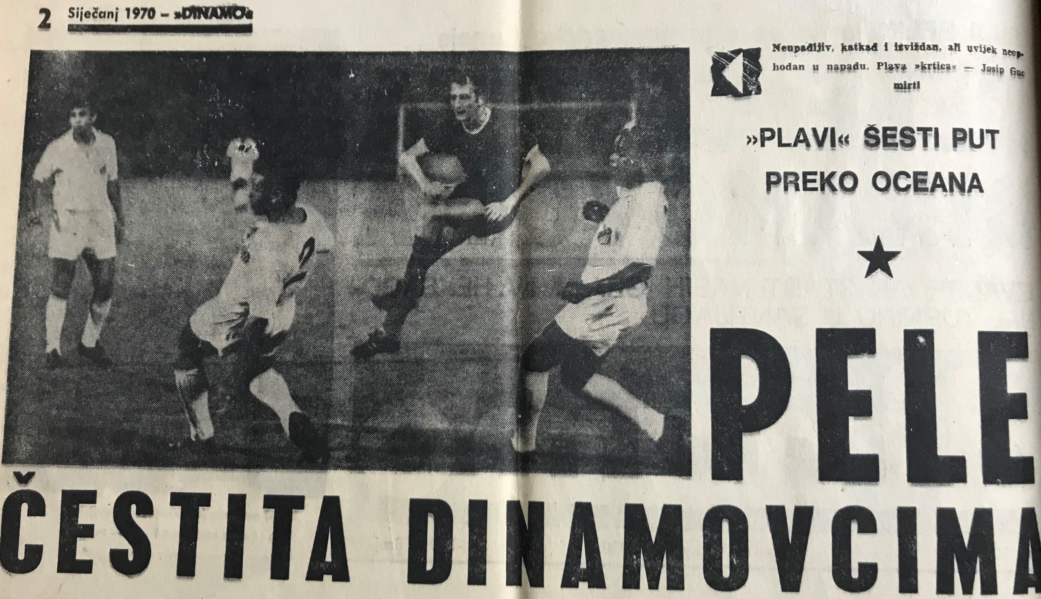 Prvi je put Pele protiv Dinama zaigrao s tek 17 godina, u ljeto 1957., i to na Maracani u Rio de Janeiru... Drugi je pokušaj uslijedio ujesen 1969. u Zagrebu, a treći ubrzo potom, krajem siječnja 1970. na turniru u Čileu. Proslavljeni je brazilski virtuoz, po mnogima najbolji nogometaš svih vremena, triput igrao protiv Dinama, na tri različita terena i – nijednom nije pobijedio. Nijednom, doduše, nije niti izgubio... Kasnije se Pele, dakle, još jednom družio s dinamovcima, došao je 1975. u Zagreb gdje je na maksimirskom terenu, kao ambasador u reklamnoj kampanji, bio demonstrator dječacima iz Dinamove škole.