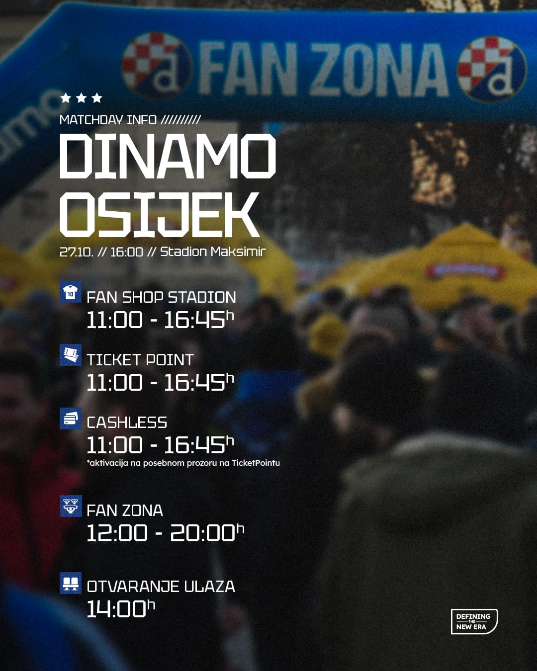 Bit će prisutna bogata ugostiteljska ponuda, zabavni i dječji sadržaji te nagradne igre, DJ će brinuti za dobru glazbenu podlogu, a imat ćemo i službenog voditelja programa koji će animirati sve okupljene i brinuti se za dobru atmosferu pred stadionom.