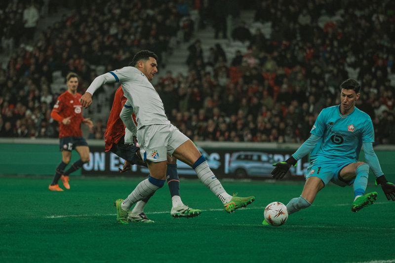 Lille je ubacio u višu brzinu nakon dvadesetak minuta igre, Hakon Arnar Haraldsson povukao je polukontru sredinom terena i odigrao ulijevo gdje je nadirao Felix,Correia. Lopta je prošla iza leđa Dinamove obrane, a Lilleov krilni napadač osvanuo sam pred vratarem Ivanom Filipovićem i zatresao mrežu.