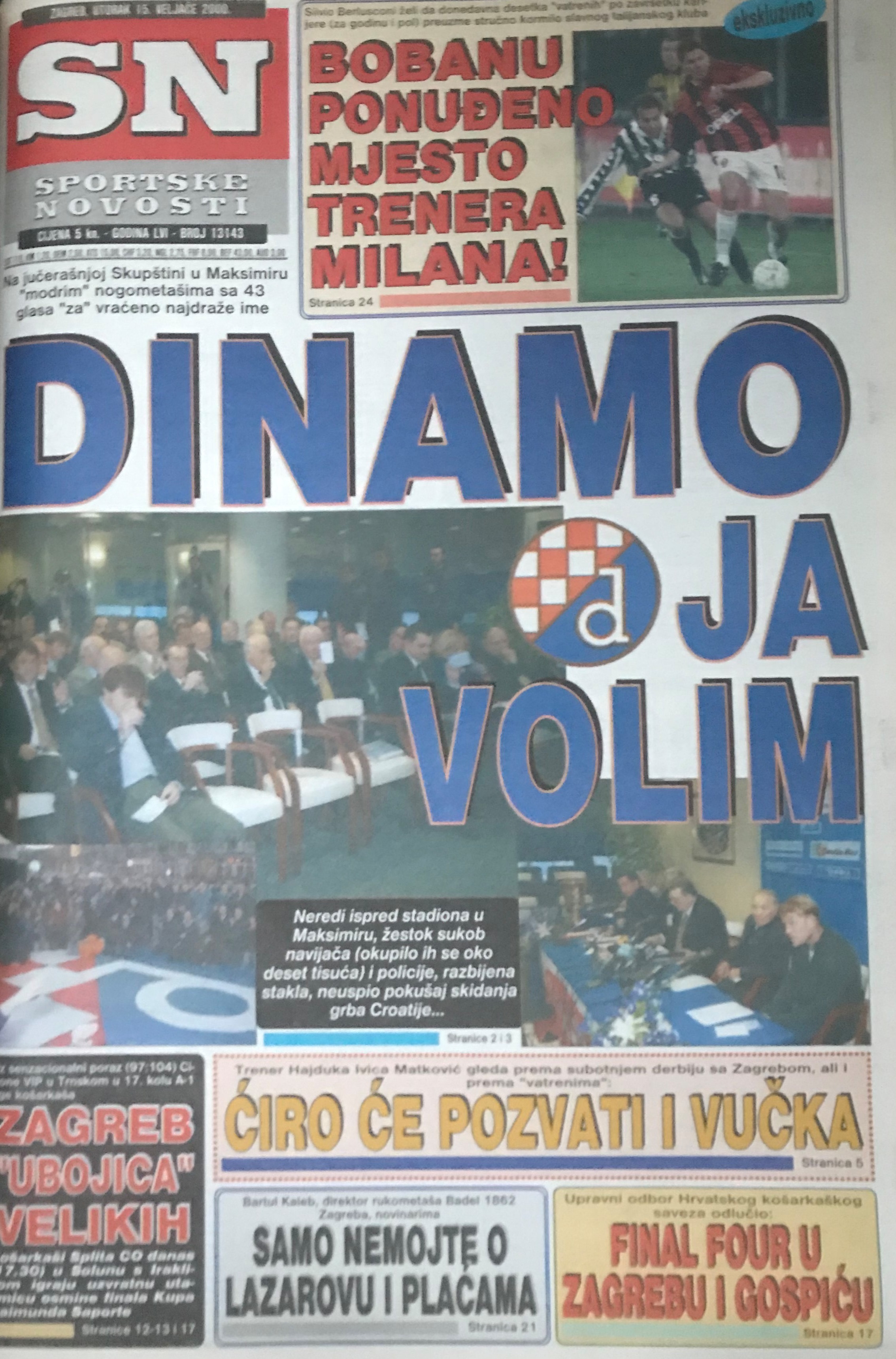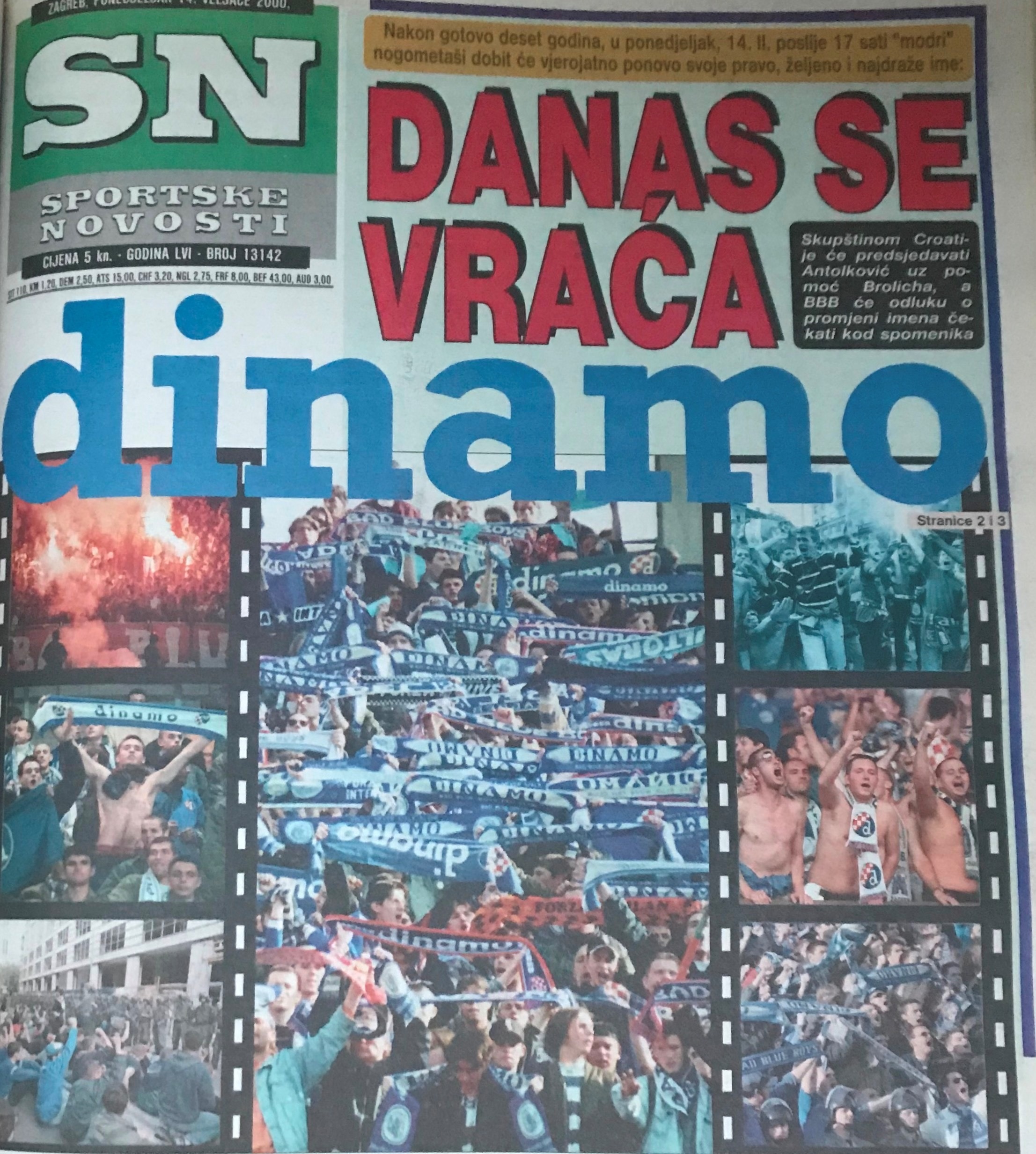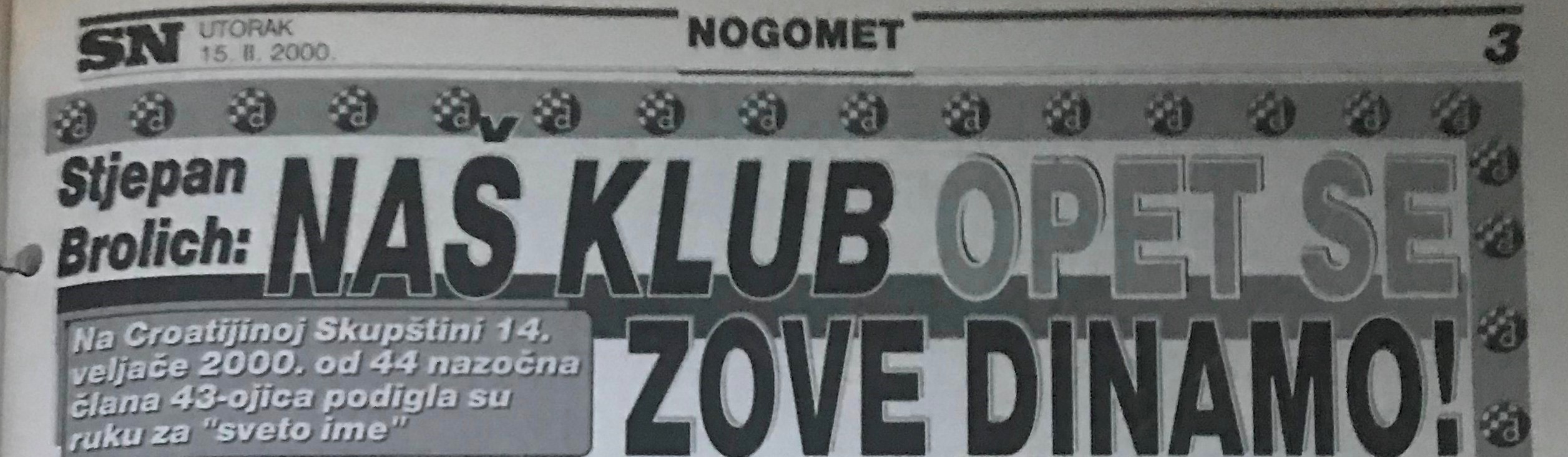 Točno na današnji dan, na Valentinovo 14. veljače 2000. godine klupska je Skupština nakon osam i pol godina vrludanja, lutanja i poigravanja s klupskim imenom ispravila nepravdu iz lipnja 1991. godine i vratila – Dinamo!