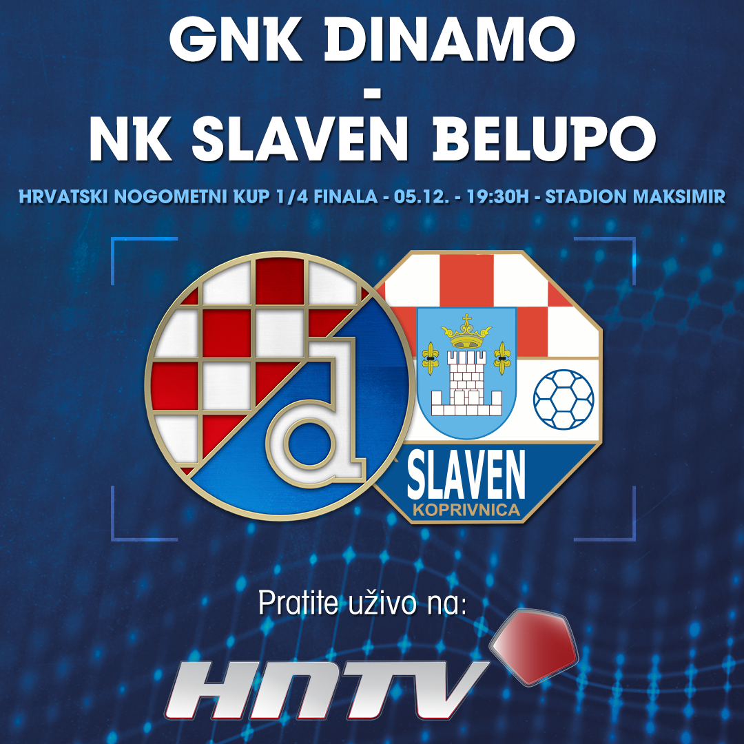 Prijenos utakmice četvrtfinala Hrvatskog nogometnog kupa GNK Dinamo - NK Slaven Belupo, u srijedu, 5. prosinca, od 19:30h možete pratiti u programu Hrvatske nogometne televizije.