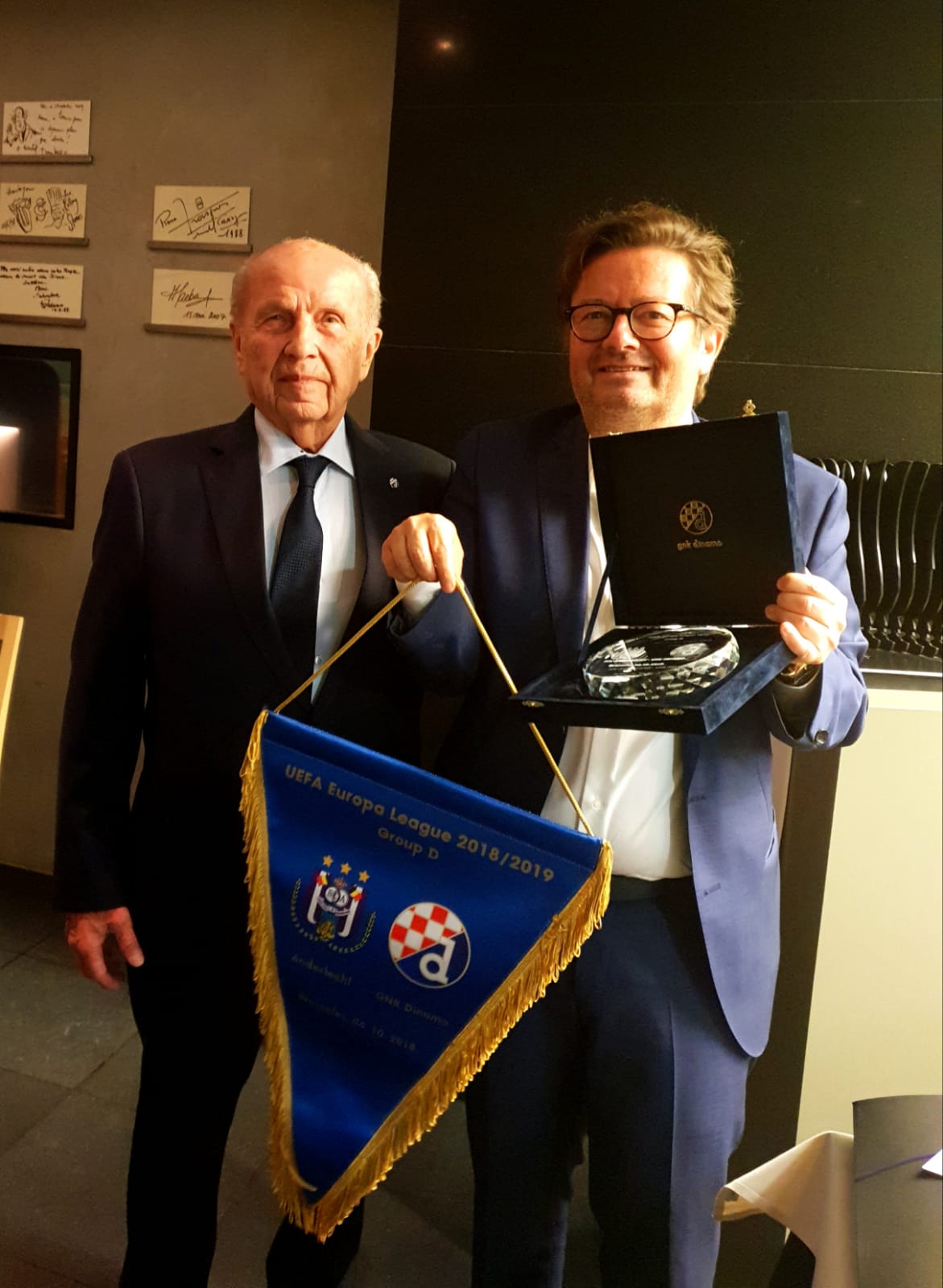 U ugodnoj atmosferi u poznatom belgijskom restoranu Comme Chez Soi delegaciju Dinama predvođenu predsjednikom Mirkom Barišićem ugostio je novi predsjednik Andrelechta, Marc Coucke, a nakon druženja klubovi su razmjenili poklone za uspomenu.