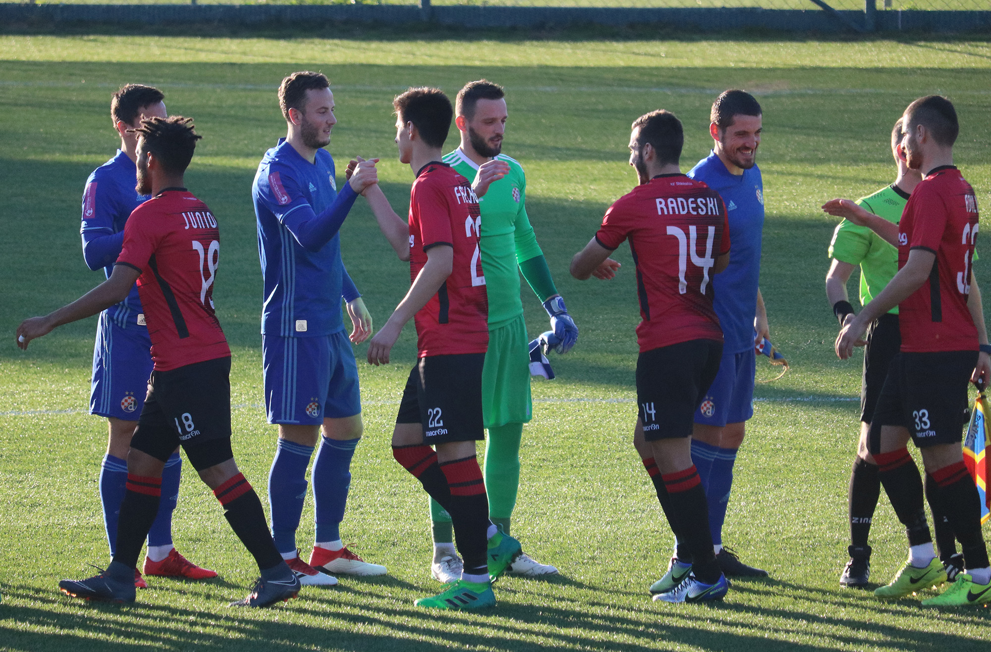 Modri su u susret s Makedoncima krenuli u sljedećem sastavu: Na golu Zagorac, stoperi Rrahmani i Lešković, a na bokovima Lecjaks i Stojanović. Ispred Ademi i Doumbia, a pred njima Soudani, Moro i Olmo. Špica je bio Gavranović.