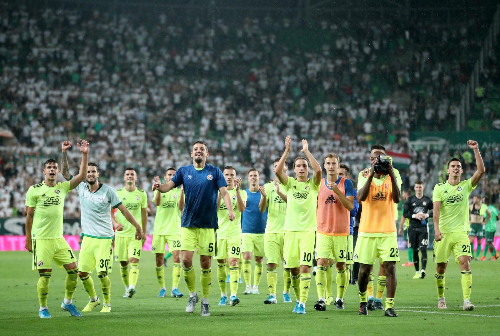 Igrači Dinama upisali su sjajnu, zasluženu i vrijednu 4:0 pobjedu protiv momčadi Ferencvarosi u Budimpešti, a fotografije pogledajte u galeriji. Strijelci su bili Arijan Ademi, Bruno Petković, Dani Olmo i Amer Gojak.