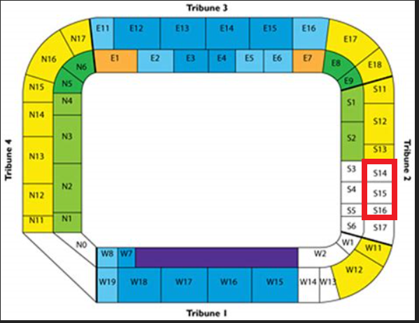 Lokacija na stadionu Constant Vanden Stock je u neposrednoj blizini gostujućeg sektora (S -14,15,16).