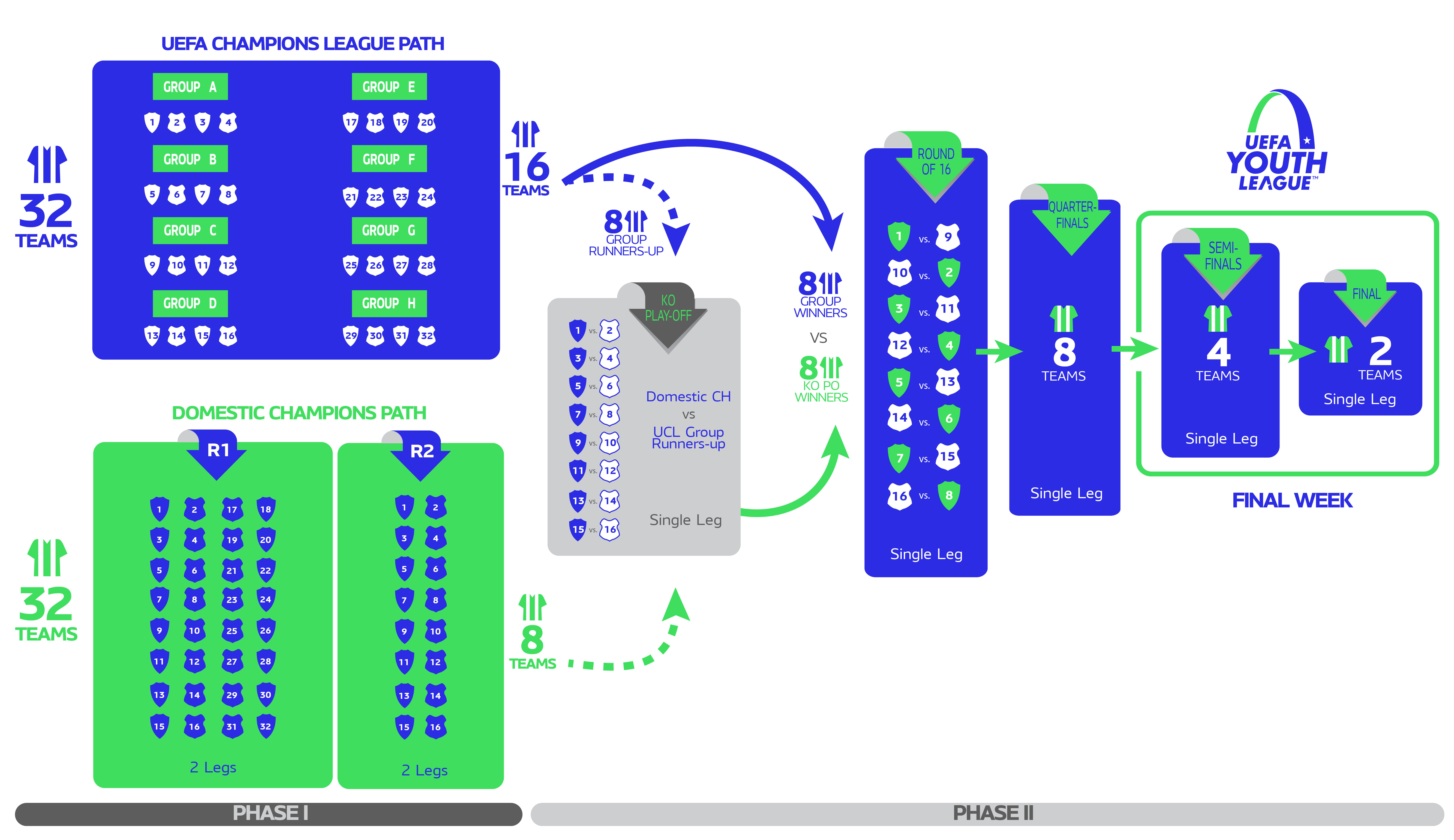 Podsjetimo, u ''Domestic Champions'' dijelu natjecanja sudjeluju juniorski prvaci 32 najbolje rangirana nacionalna saveza. Nakon prva dva kola, osam preostalih sudionika iz te skupine igrat će protiv osam drugoplasiranih momčadi iz dijela natjecanja gdje igraju juniorske momčadi klubova koji igraju u grupnoj fazi Lige prvaka (UEFA Champions League path). Pobjednici će se plasirati u osminu finala gdje će ih čekati pobjednici grupne faze ''UEFA Champions League path''.