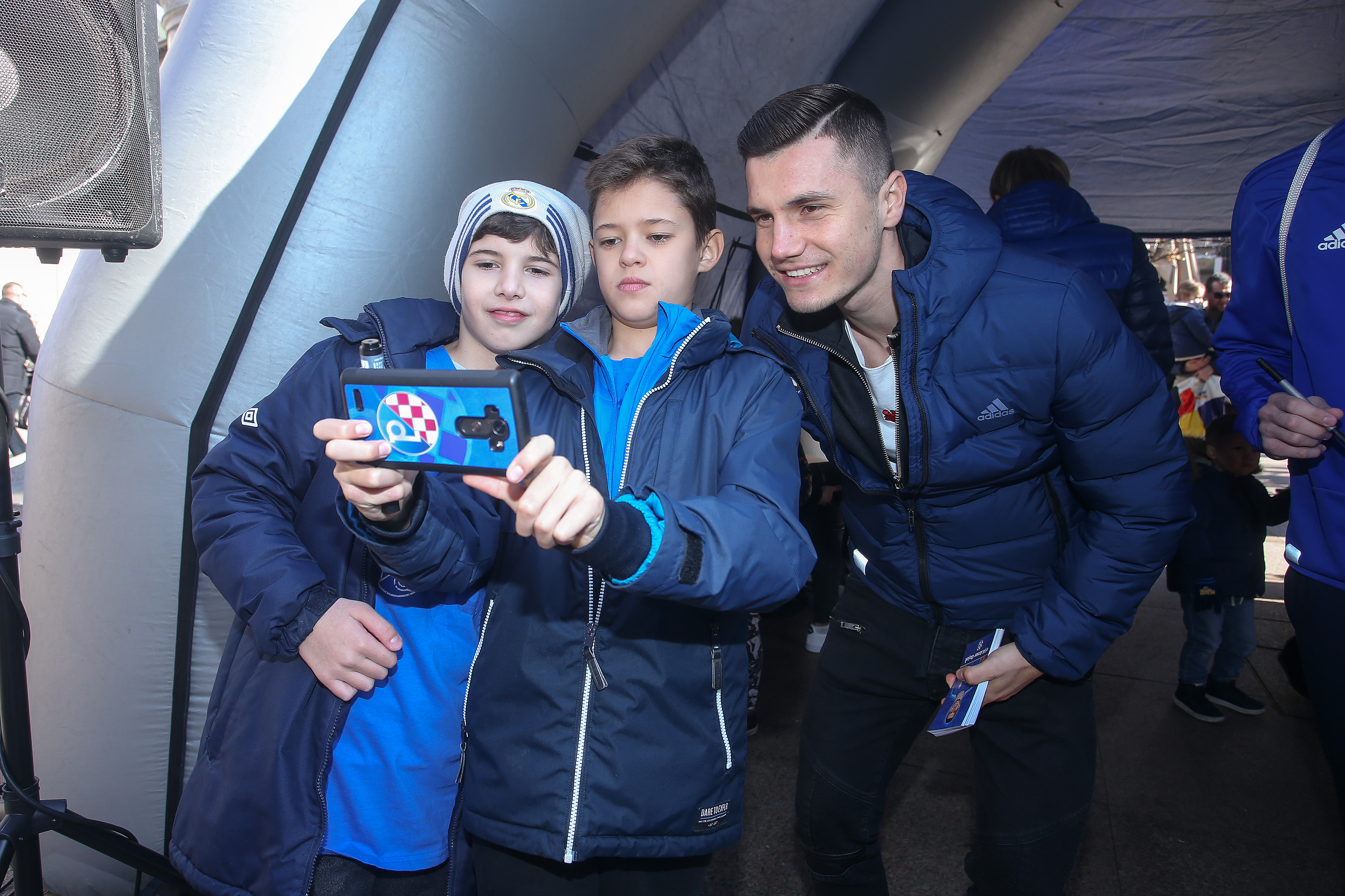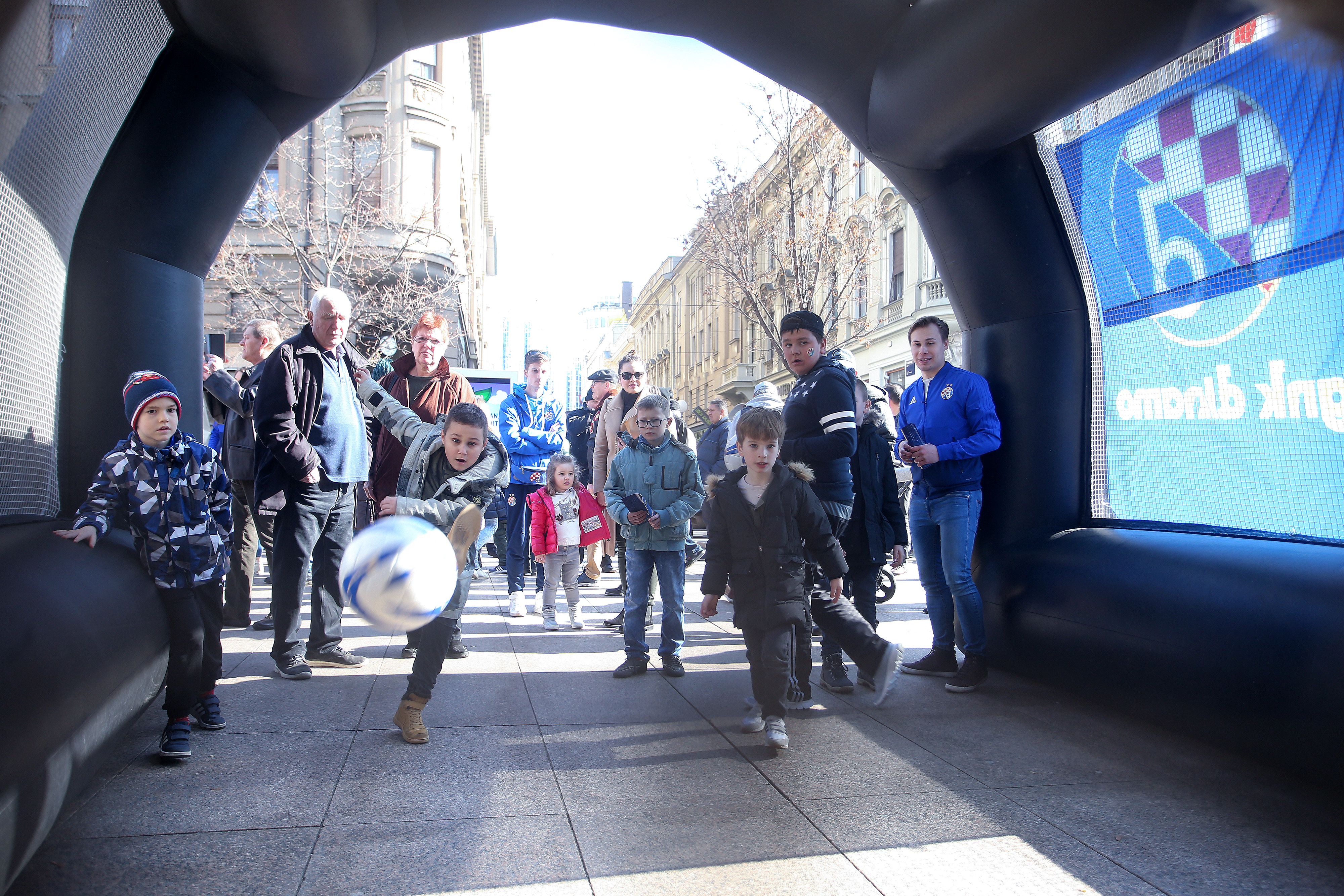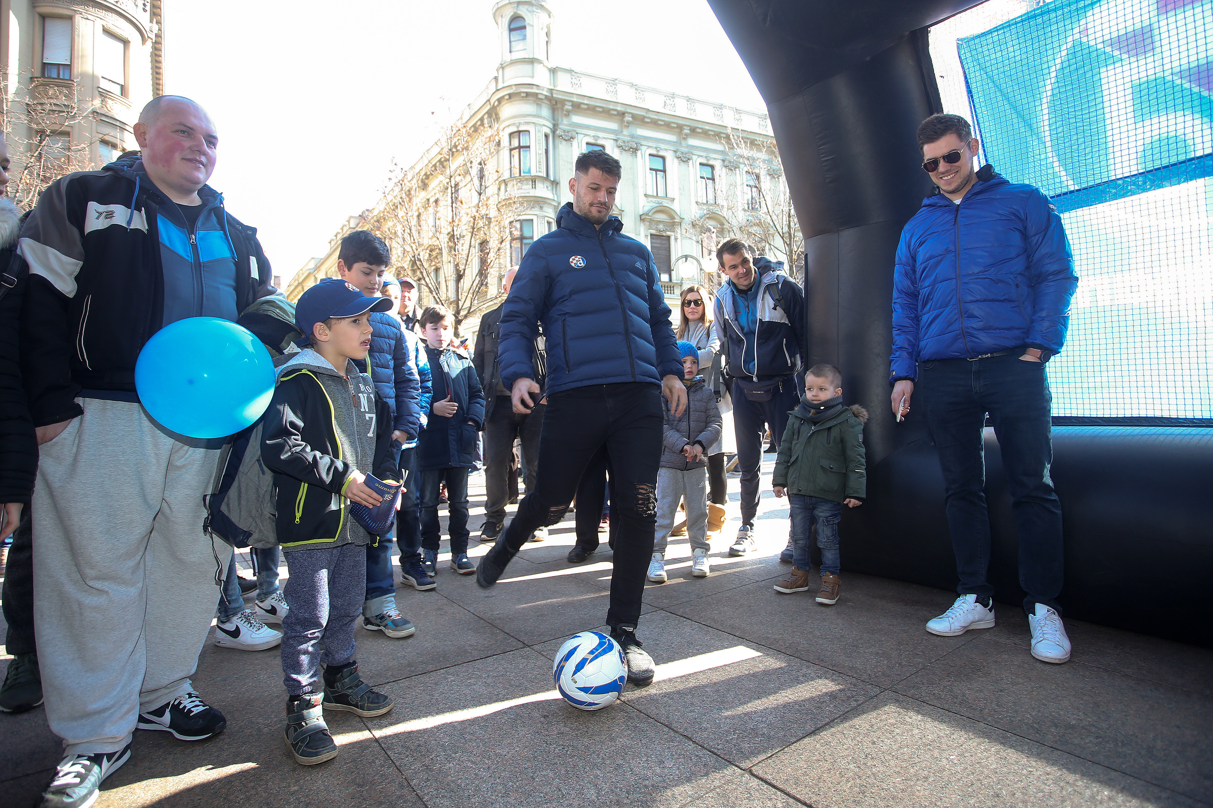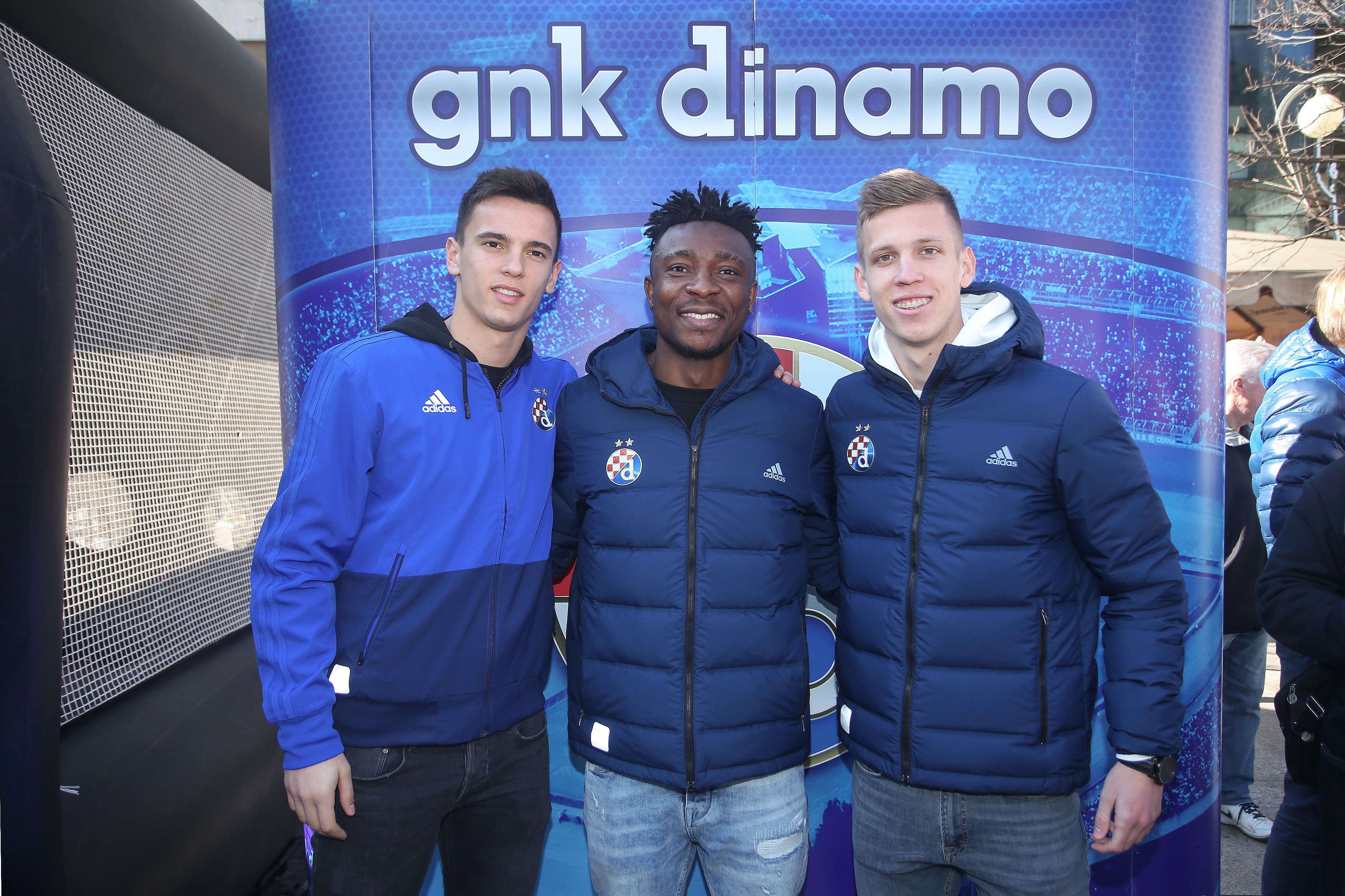 Nikola Moro, Dani Olmo, Bruno Petković, Dominik Livaković, Izet Hajrović, Amer Gojak, Iyayi Atiemwen i Lovro Majer pozdravili su na Cvjetnom malene i velike navijače i proveli lijepih sat vremena na druženju. Najspretniji su odmjerili snage u soccerami - igri u kojoj je nogometnom loptom potrebno pogoditi zadanu rupu, a svoje su vještine isprobali Gojak, Hajrović, Atiemwen i Petković. Uz uobičajeno dijeljenje autograma i fotografiranje, prvotimci Dinama dobili su niz pohvala za sve što su napravili ove sezone, a navijačice i navijači zaželjeli su dečkima puno sreće u povijesnoj utakmici u četvrtak. Svi su htjeli igračima osobno uputiti koju lijepu riječ i poželjeti im svu sreću za Europa ligu.