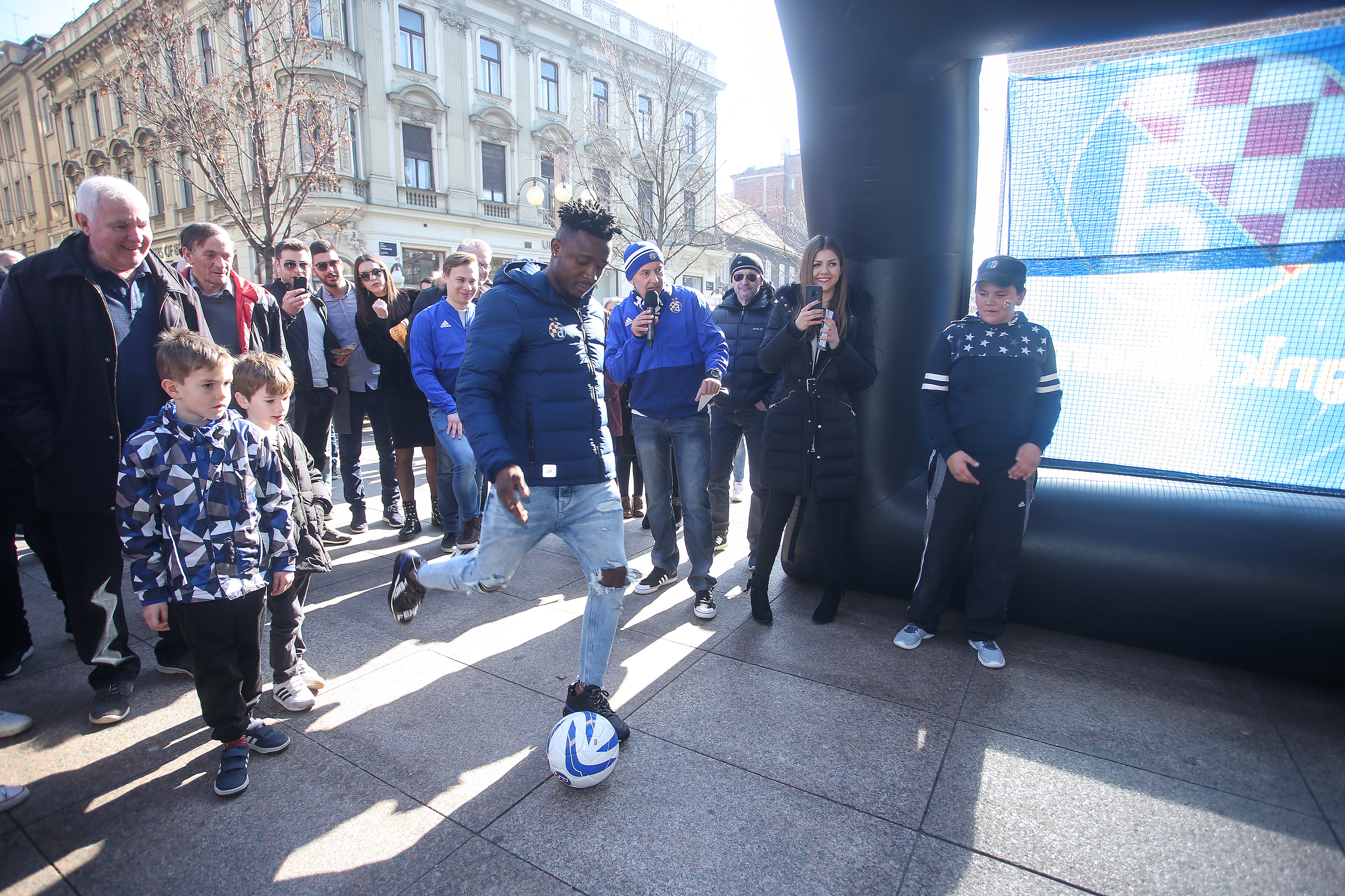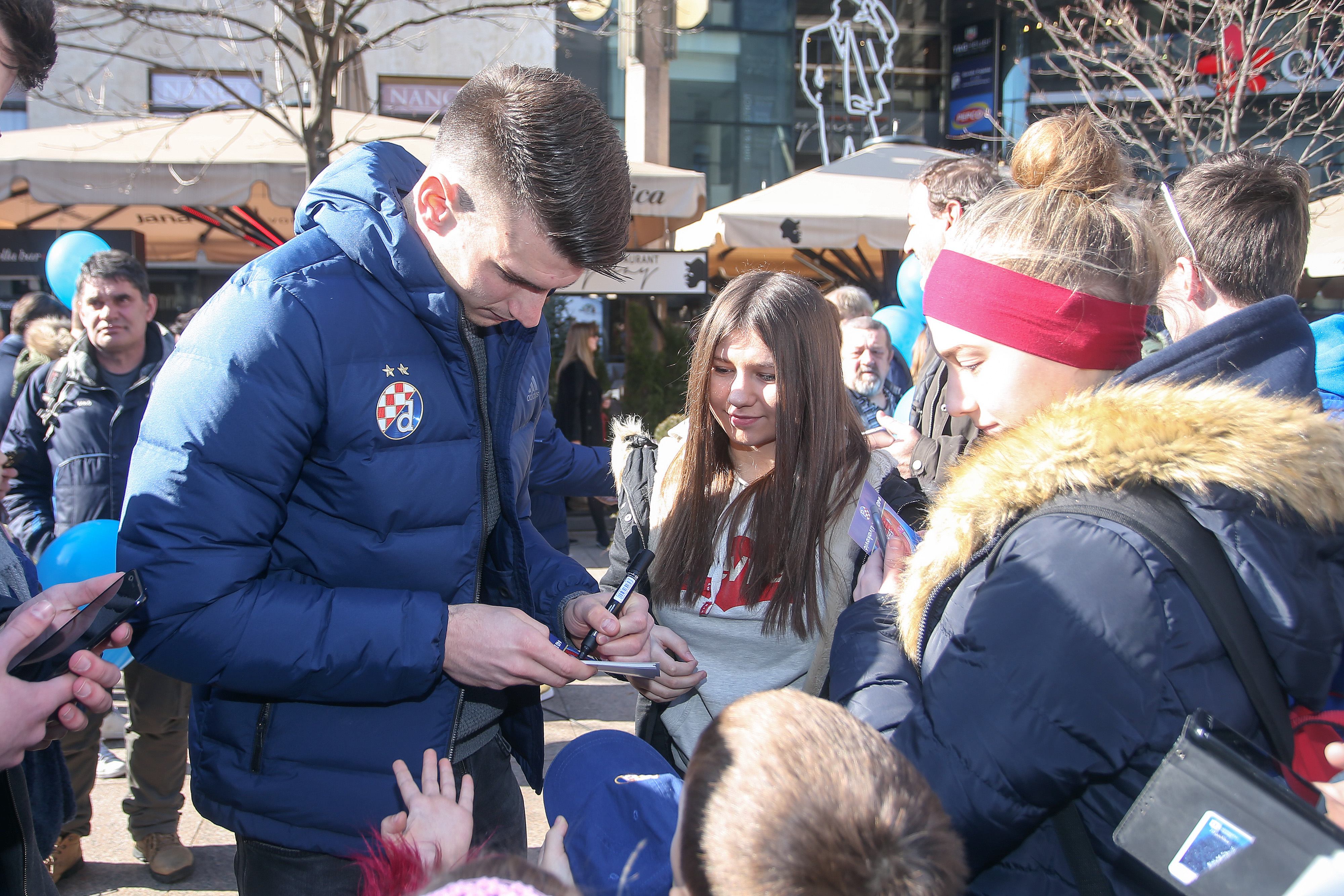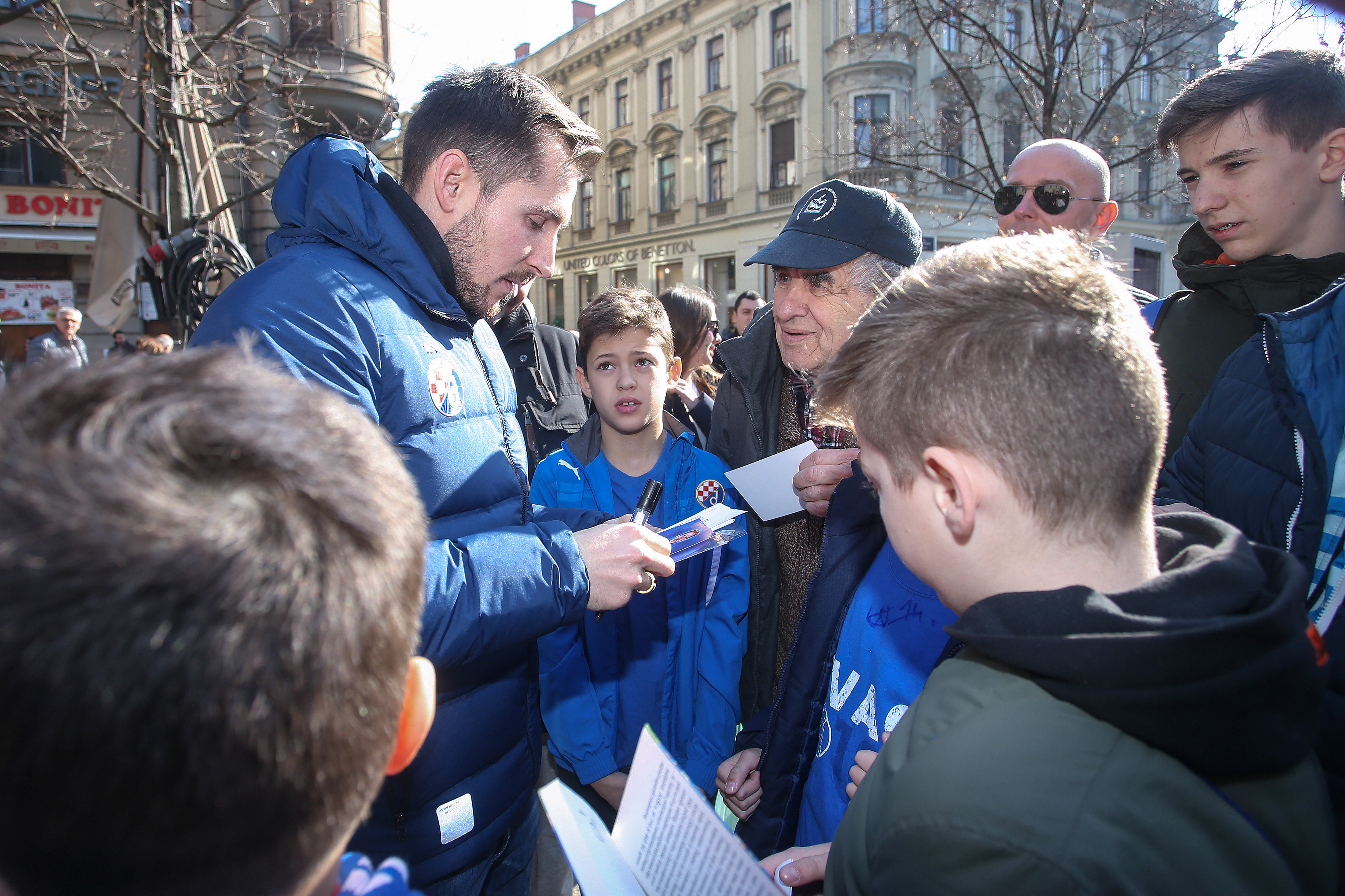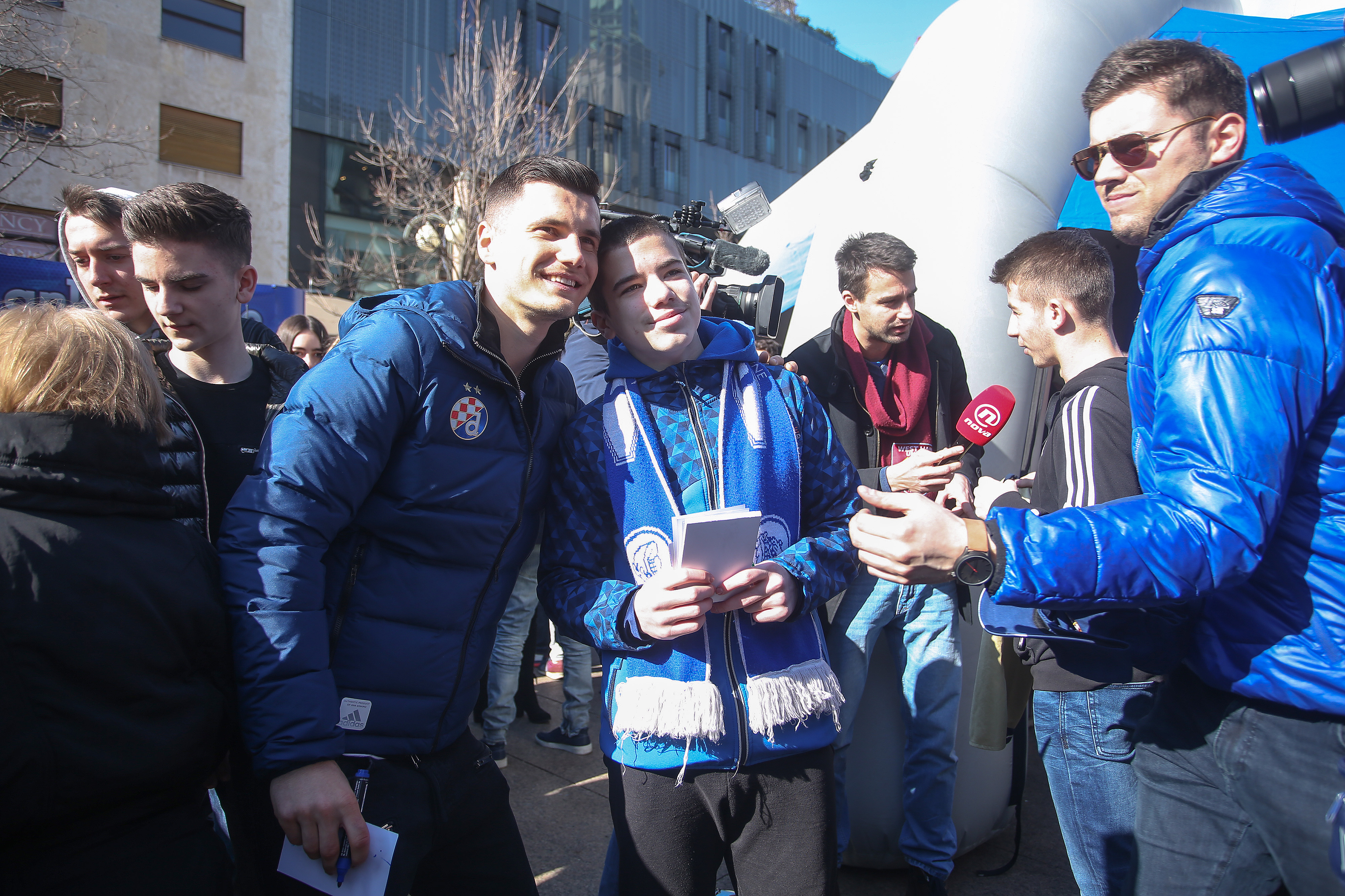 Nikola Moro, Dani Olmo, Bruno Petković, Dominik Livaković, Izet Hajrović, Amer Gojak, Iyayi Atiemwen i Lovro Majer pozdravili su na Cvjetnom malene i velike navijače i proveli lijepih sat vremena na druženju. Najspretniji su odmjerili snage u soccerami - igri u kojoj je nogometnom loptom potrebno pogoditi zadanu rupu, a svoje su vještine isprobali Gojak, Hajrović, Atiemwen i Petković. Uz uobičajeno dijeljenje autograma i fotografiranje, prvotimci Dinama dobili su niz pohvala za sve što su napravili ove sezone, a navijačice i navijači zaželjeli su dečkima puno sreće u povijesnoj utakmici u četvrtak. Svi su htjeli igračima osobno uputiti koju lijepu riječ i poželjeti im svu sreću za Europa ligu.