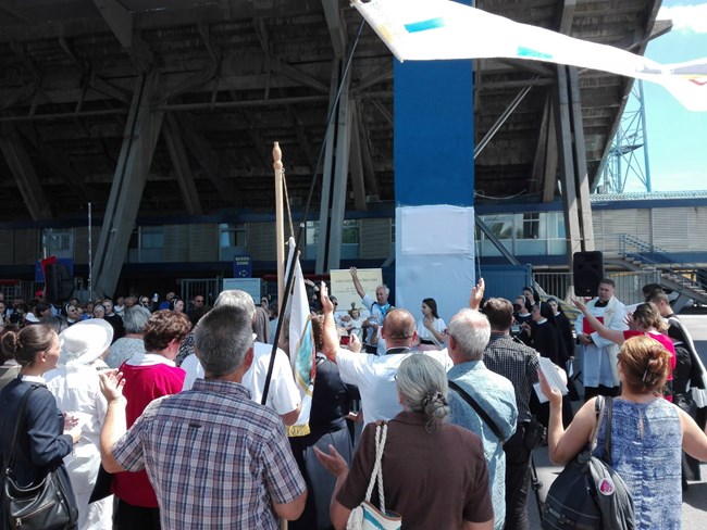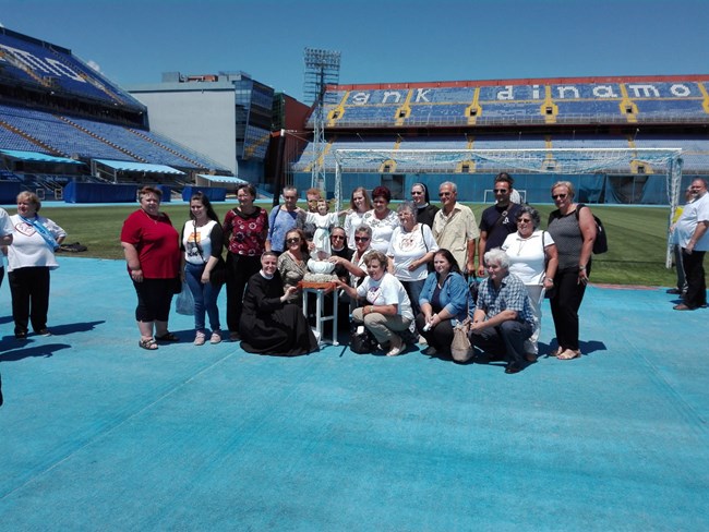 Veselo raspoloženje uz procesijsko slavlje, pjesme i druženje uz više od 300 hodočasnika... U takvom je, pozitivnom, zabavnom, emotivnom i inspirativnom ozračju pod svodovima maksimirskoga stadiona protekla svečanost otkrivanja spomen-ploče u čast 100. obljetnice podizanja samostana na prostoru sadašnjega nogometnog kompleksa.