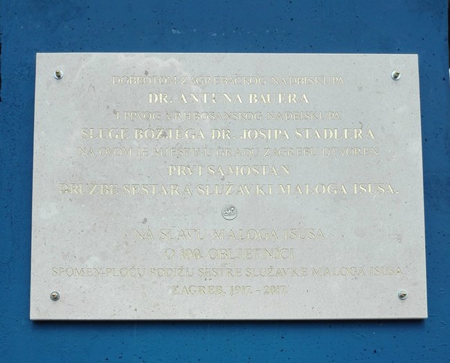 Svečanost je nastavljena euharistijskim slavljem i svečanom akademijom u Nadbiskupijskom pastoralnom institutu na Kaptolu. Na maksimirskoj spomen-ploči stoji natpis: "Dobrotom zagrebačkog nadbiskupa dr. Antuna Bauera i prvog vrhbosanskog nadbiskupa, sluge Božjega dr. Josipa Stadlera na ovom je mjestu u gradu Zagrebu otvoren prvi samostan družbe sestara Služavki Maloga Isusa. Na slavu Maloga Isusa o 100. obljetnici spomen-ploču podižu sestre služavke Maloga Isusa. Zagreb, 1917. – 2017.“