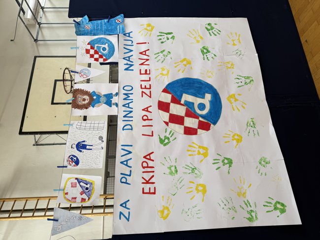 Sa samim sadržajem projekta vjerujemo da ste već dobro upoznati - naš moderator i animator Luka Bulić podučavao je najmlađe o važnosti zdrave i pravilne prehrane, bavljenja sportom i kretanjem, zajedništvu i timskom duhu. Djeca su sve to brzo pohvatala i sjajno surađivala, pa su tako pomogli i u izradi jedinstvene Dinamove navijačke pjesme. Učenici OŠ "Nad Lipom" priredili su nam i prekrasno iznenađenje kada su nas dočekali s posebno izrađenim panoom ukrašenim njihovim crtežima i otiscima dlanova.