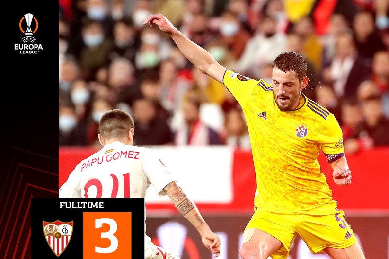 Drugoplasirana momčad španjolskog prvenstva, Sevilla, ujedno šesterostruki osvajač ovoga natjecanja, svladala je hrabri i otvoreni Dinamo s 3:1 u prvom dvoboju šesnaestine finala Europa lige. Uzvrat je 24. veljače u Zagrebu.