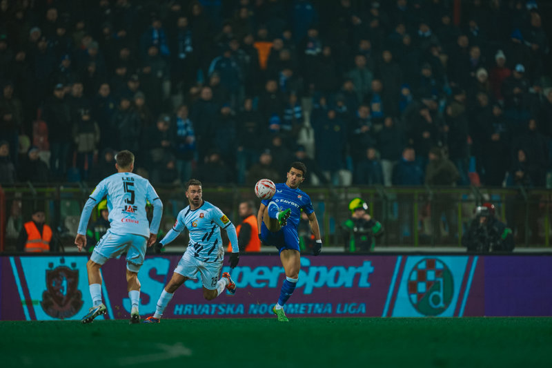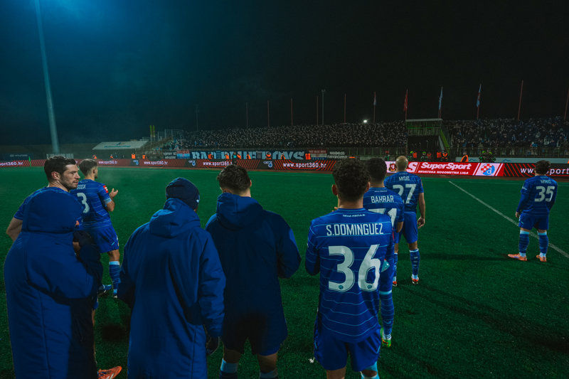 Dinamo je od samog starta pritiskao suparničku obranu, kružio oko kaznenog prostora, tražio koridore prema vatima i posve kontrolirao igru. Plavi su već u 5. minuti dvaput zaprijetili u gotovo istoj akciji. Prvo je Dion Drena Beljo primio loptu prsima na sedam metara od vrata, ali su je domaći u zadnji trenutak uspjeli izbiti. U nastavku je Arbër Hoxha potegnuo s lijeva s 20 metara malo pored suprotne vratnice.
