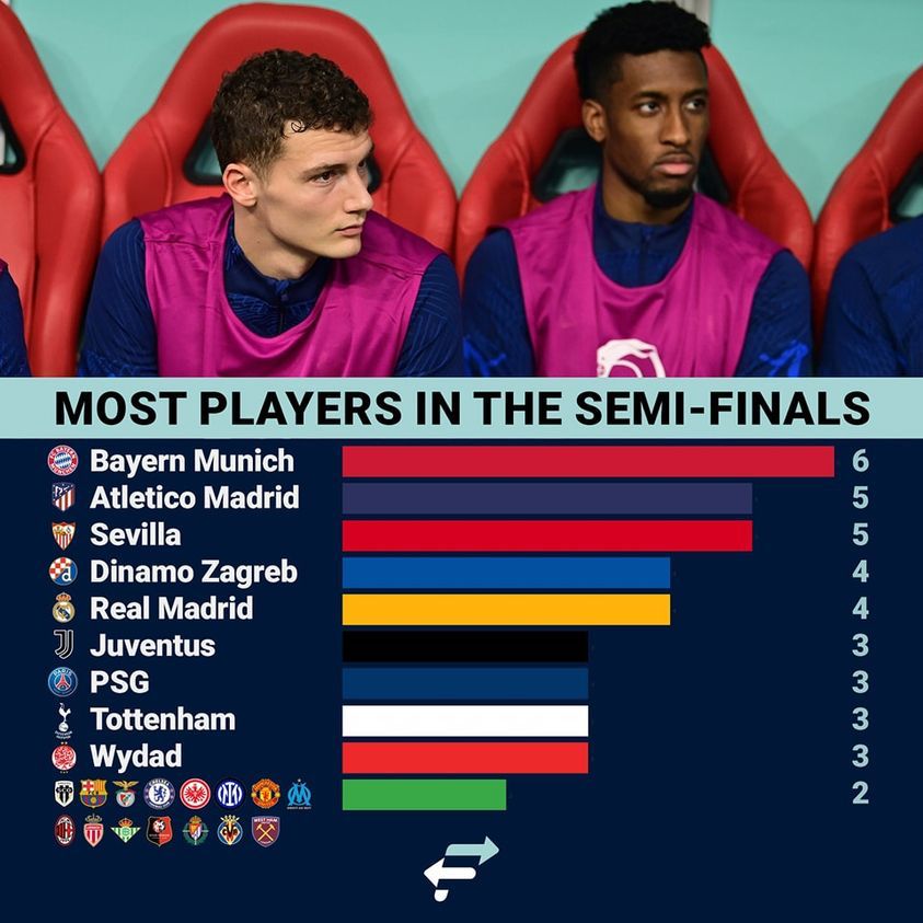 Po navedenom kriteriju ispred Dinama su samo tri kluba: Bayern München koji u polufinalu ima šest svojih igrača, te Atletico Madrid i Sevilla koji ih imaju po pet.