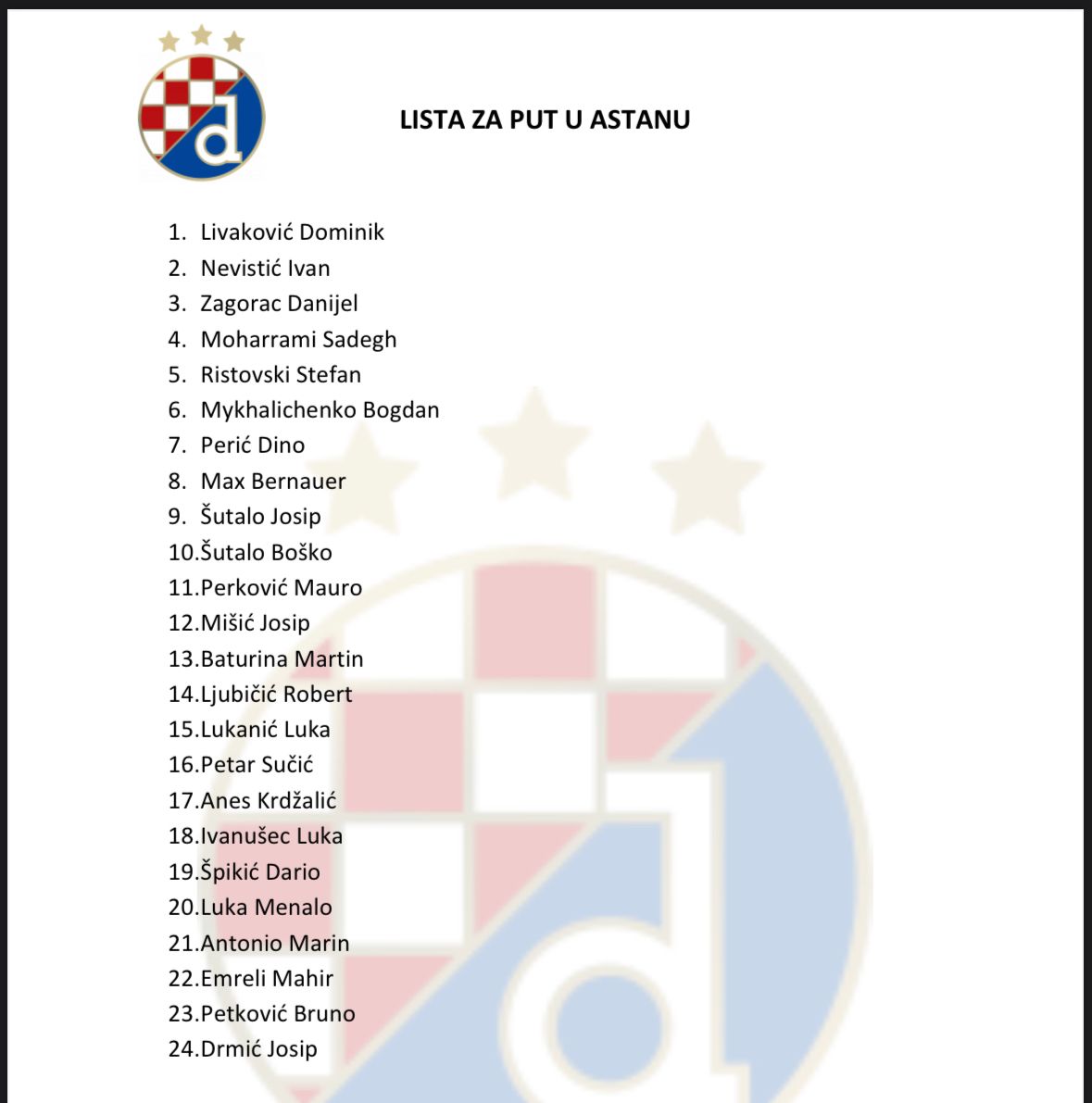 Na put u Kazahstan su pošli sljedeći igrači: