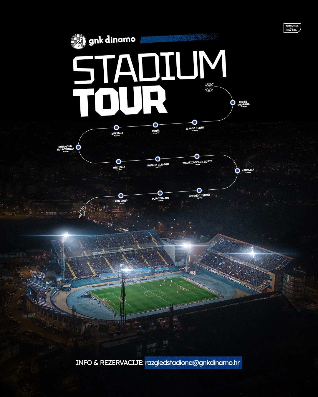Od 31. svibnja do 7. lipnja započinje prva etapa ovog projekta, tijekom kojeg ćete imati jedinstvenu priliku zaviriti iza kulisa Dinamove nogometne pozornice. Prošetajte kroz prostorije koje čuvaju uspomene na najveće uspjehe u povijesti kluba — svlačionice u kojima su se kovale pobjede, hodnike koji su svjedočili i slavlju i emocijama, te dvorane u kojima su uzdignuti brojni trofeji. Osjetite puls stadiona, emociju svake pobjede i snagu zajedništva koje nas veže.
