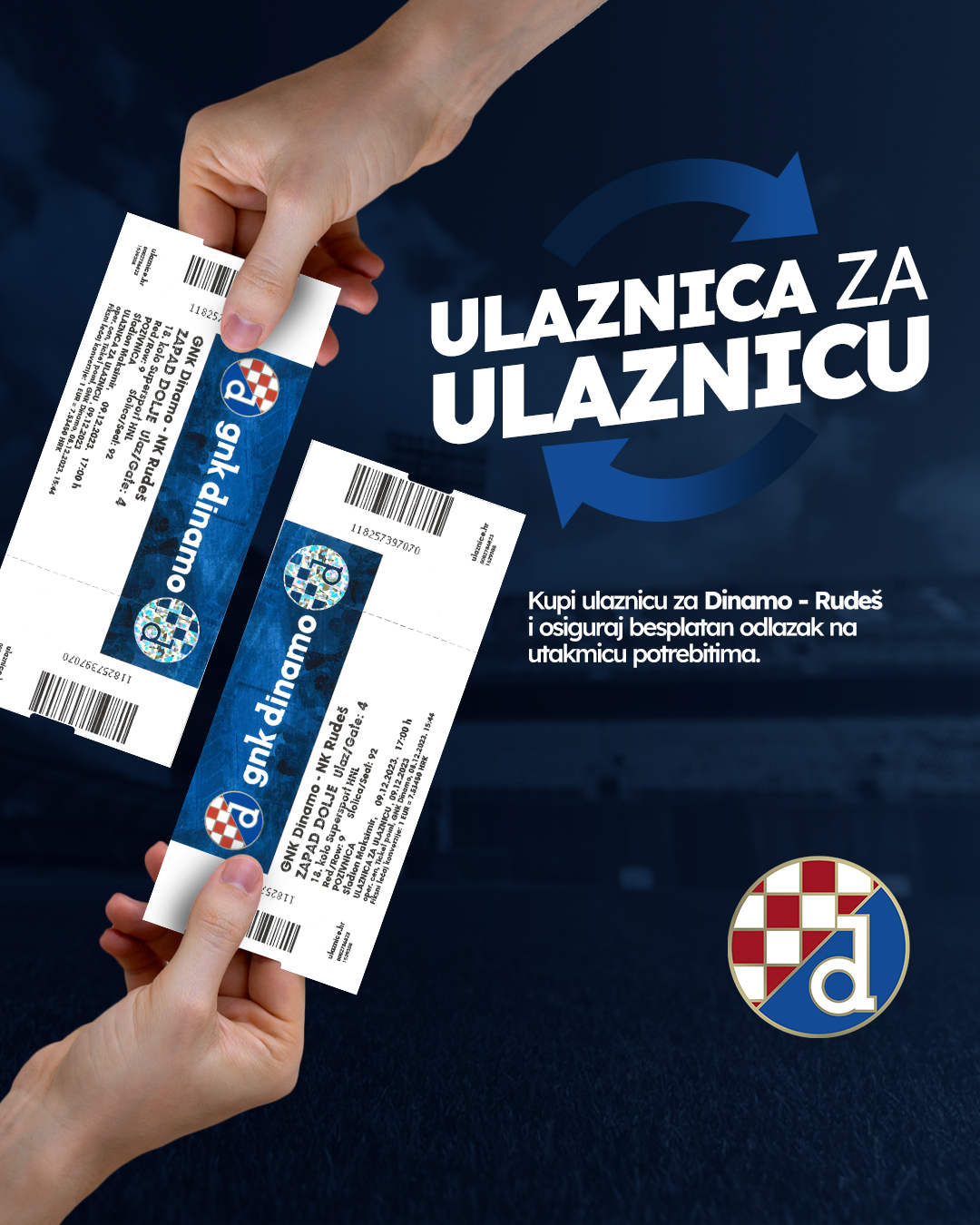 Utakmicom protiv Rudeša započinje kampanja pod nazivom "Ulaznica za ulaznicu". O čemu se radi? Klub je u predblagdanskom periodu odlučio pokazati senzibilnost prema najranjivijim skupinama, pa će s tim motivom za svaku kupljenu ulaznicu za dvoboj Dinamo - Rudeš osigurati jednu besplatnu ulaznicu članovima/štićenicima udruga Palčići, Centar za rehabilitaciju Zagreb, Udruga Down Zagreb, Dom nade i PINK Life. U prijevodu, svi koji kupe ulaznicu za dvoboj Dinamo - Rudeš učinit će dobro djelo i osigurati besplatan odlazak na utakmicu nekom pripadniku ranije navedenih udruga.