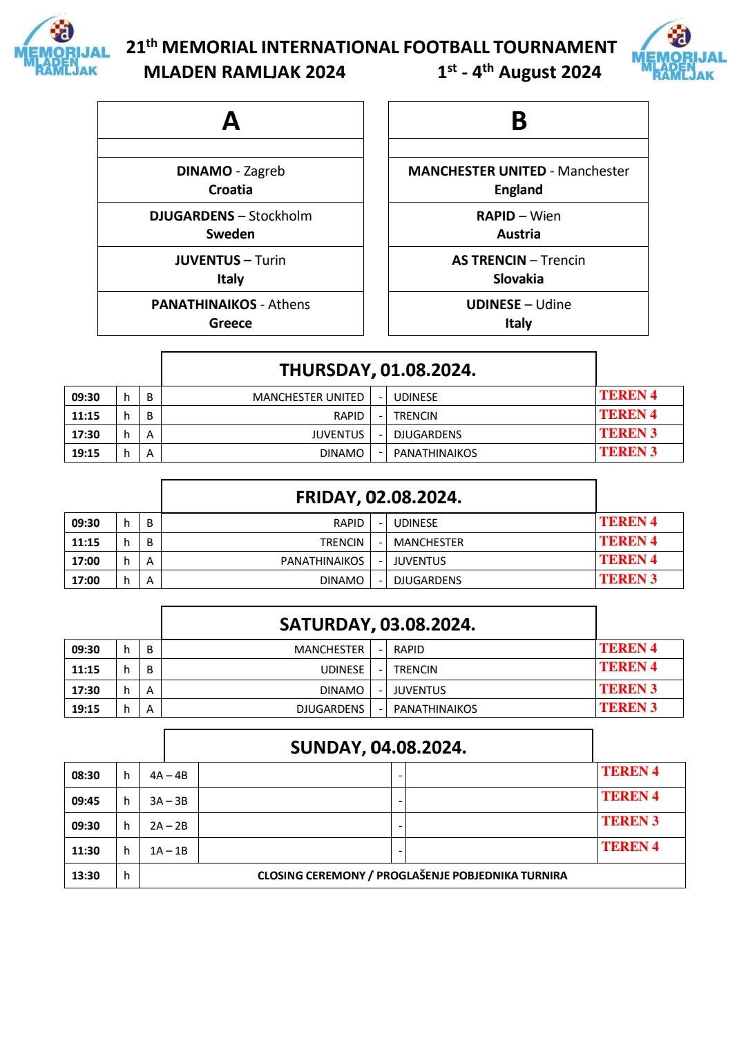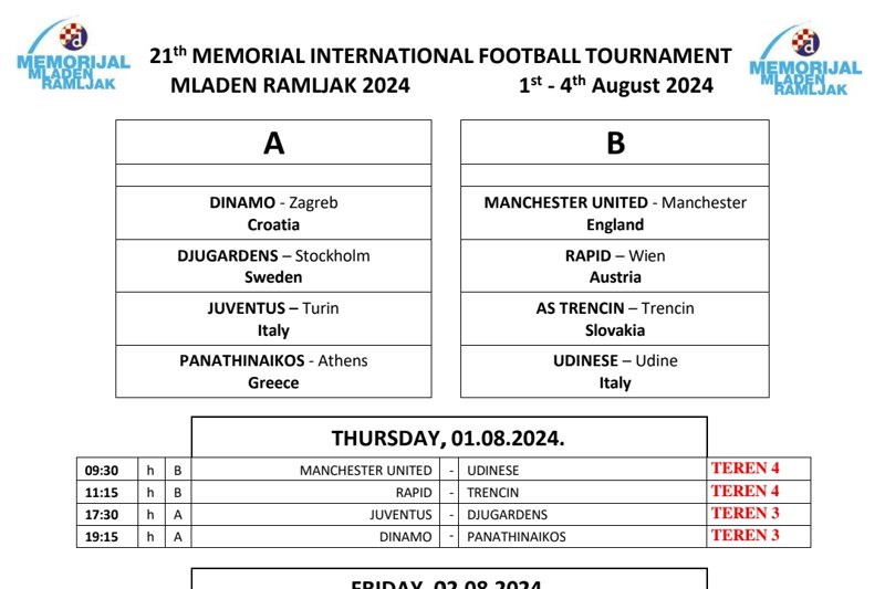 Od 1. do 4. kolovoza na Maksimiru će se održati 21. izdanje memorijalnog turnira Mladen Ramljak na kojem će uz naše juniore nastupiti i akademije iz velikana poput Manchester Uniteda, Juventusa, Panathinaikosa, Udinesea i ostalih.
