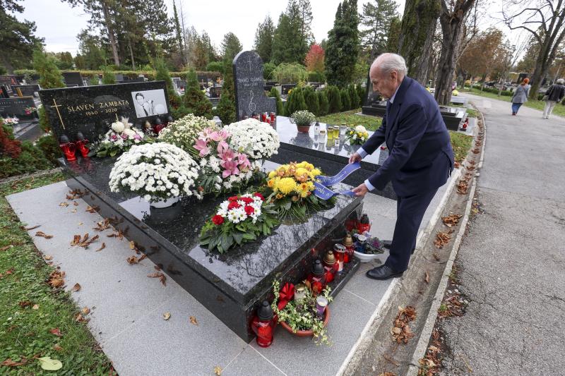U krupnom planu su osmijeh kojim je magnetizirao suigrače, prijatelje, navijače i pokal kojim je u kapetanskoj ulozi potpisao Dinamov povijesni uspjeh... Osmijeh kao simbol gospodskoga i pozitivnog duha, a pokal kao ilustracija pobjedničkog garda. Takva, po mnogočemu karakteristična i simbolična fotografija, krasi posljednje počivalište Dinamova velikana, nikad zaboravljenog „plavog devet“, našeg Slavena Zambate. Ove nedjelje, 29. listopada, prošle su točno tri godine otkako nas je zauvijek napustio naš Zambi, naš proslavljeni napadač i kapetan, a ponajprije prijatelj. Tim je povodom Dinamova delegacija posjetila njegovo posljednje počivalište u Aleji velikana na Mirogoju položivši cvijeće i zapalivši svijeće. Klupsko izaslanstvo predvodili su predsjednik Mirko Barišić i predsjednica Uprave Vlatka Peras, a u njihovu društvu bio je i Slavenov sin - Slaven Zambata junior.