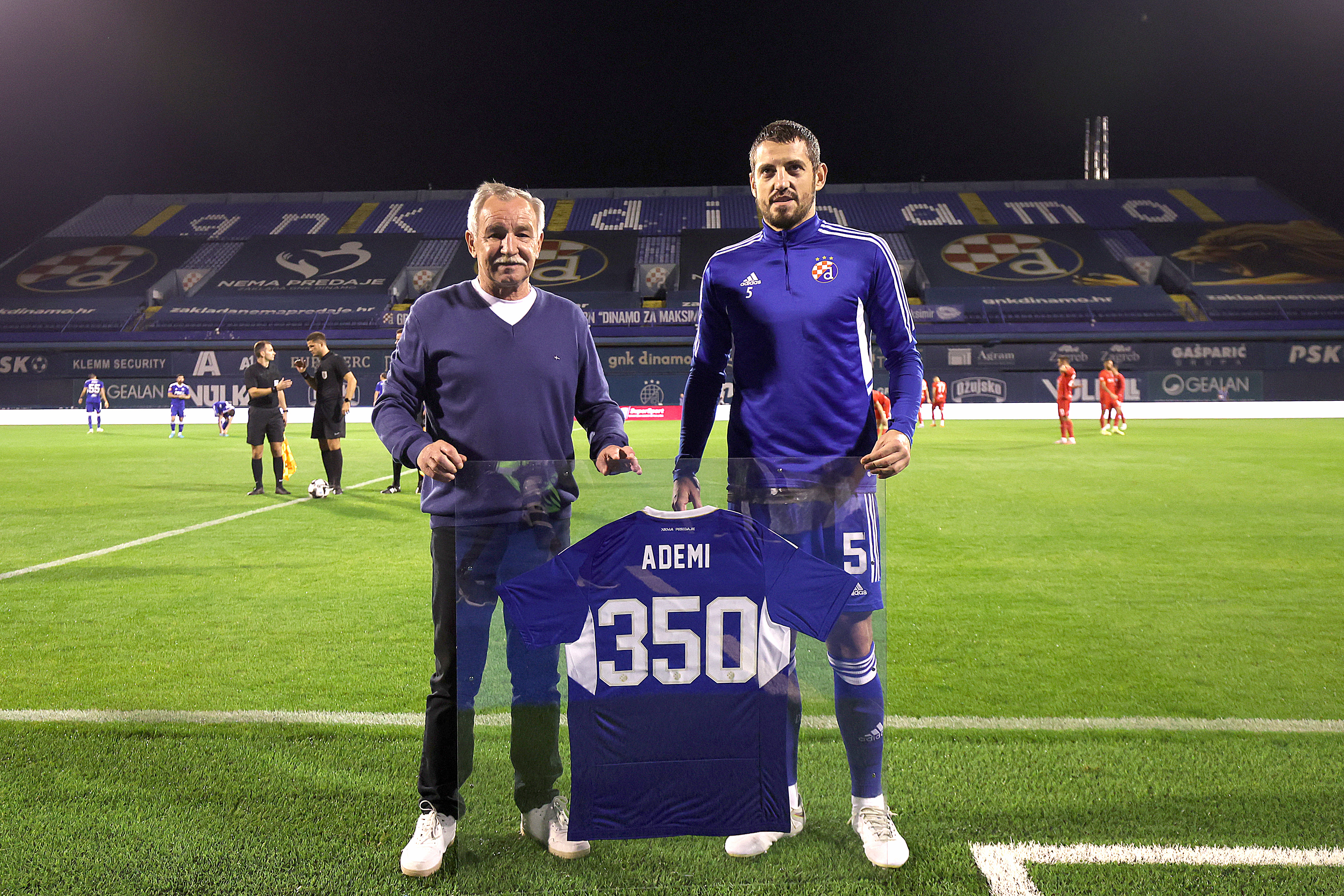 Uoči subotnje utakmice nekadašnji popularni Dinamov krilni napadač i vezist, Drago Vabec, uručio je Ademiju prigoni dres s brojem 350. I sam Vabec se s 301 službenim nastupom nalazi u „maksimirskom klubu 300“...