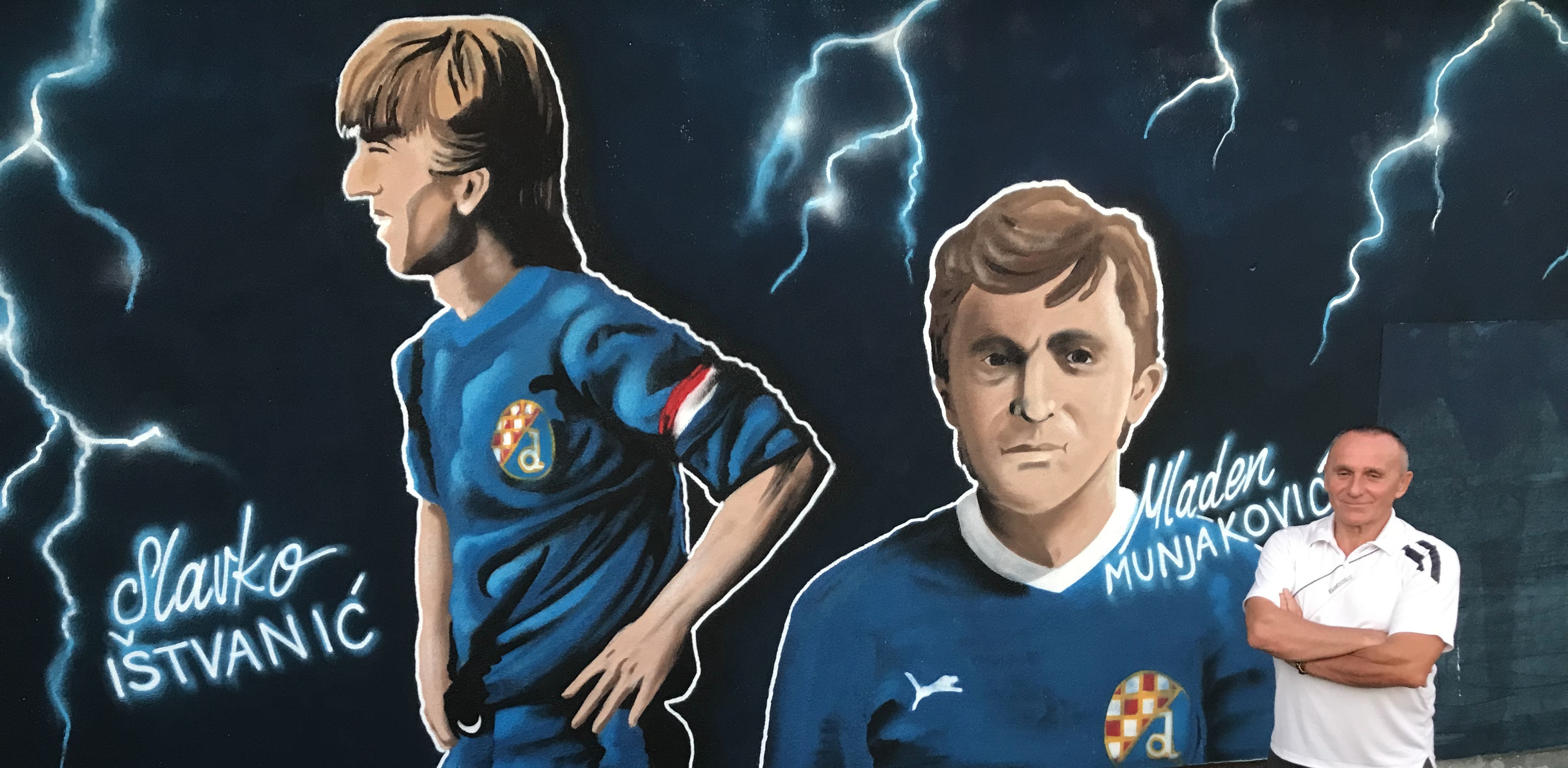 Veliki Dinamov grb, plava pozadina uz prigodan motiv munje i dvije “plave siluete” koje vas pozdravljaju s velikoga murala... U zagrebačkom prigradskom naselju Popovec, između Sesveta i Žerjavinca, lokalni su navijači na zanimljiv, estetski besprijekoran i umjetnički efektan način pokazali poštovanje i divljenje dvojici nekadašnjih popularnih Dinamovih nogometaša. Na muralu su tako, uz vidljivi ushit i gromoglasan pljesak okupljenih, osvanuli Slavko Ištvanić i Mladen Munjaković. Ištvanić je odrastao u Sesvetama, a Munjaković u Žerjavincu...